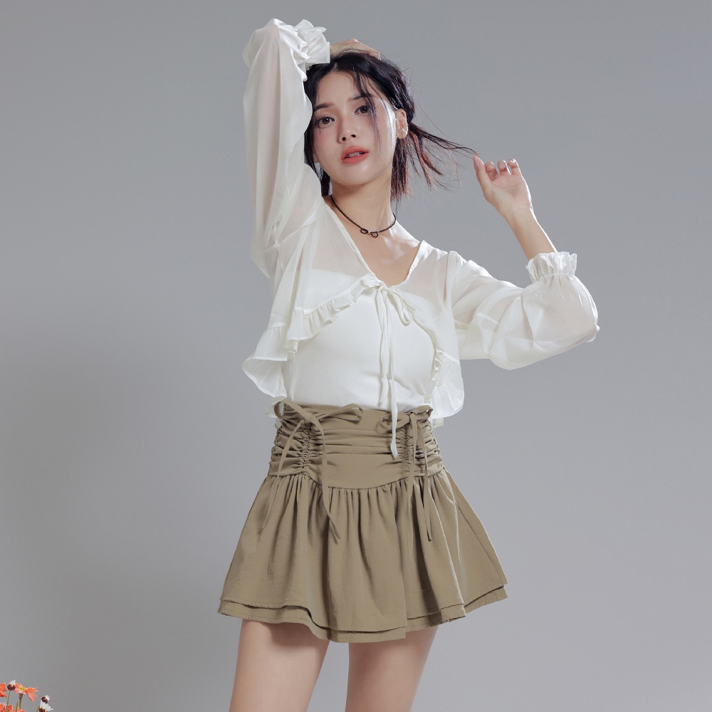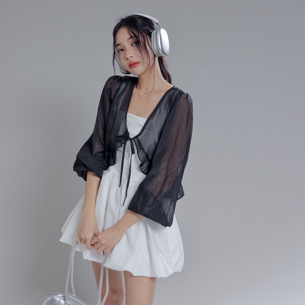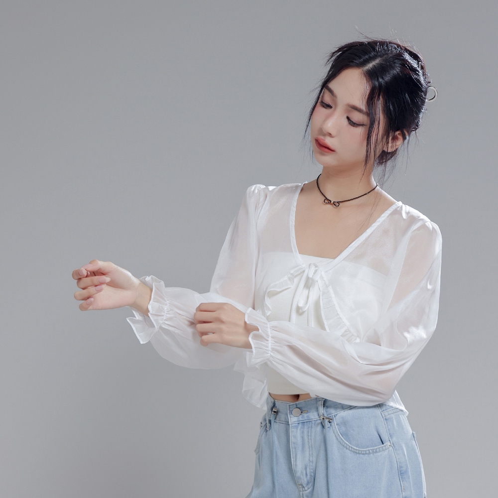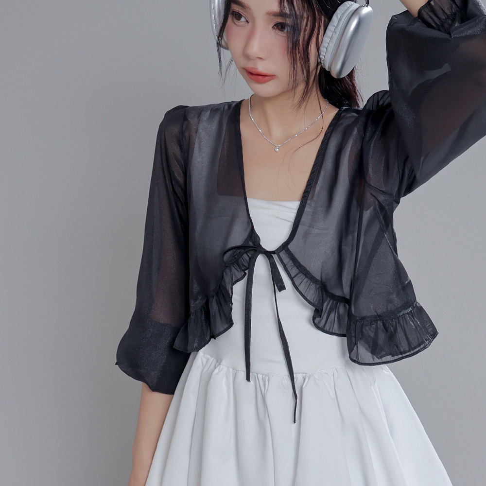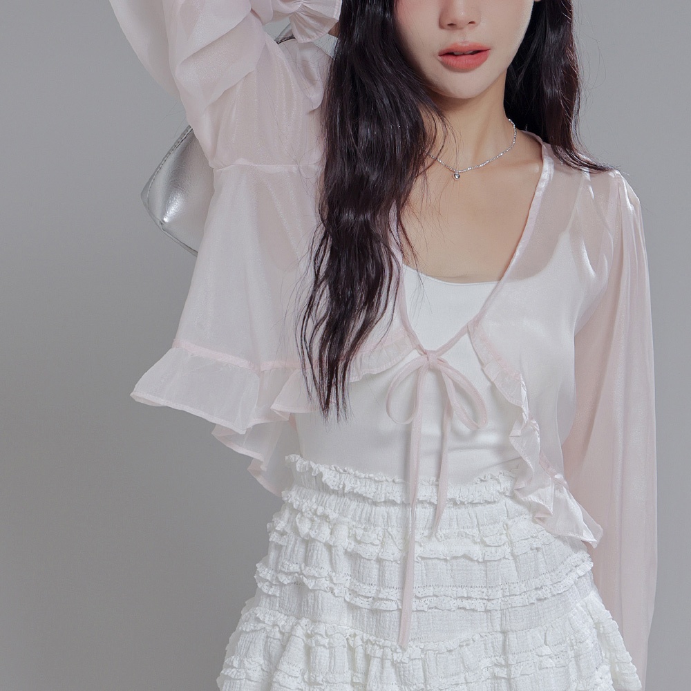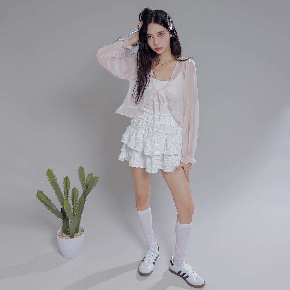 IN SHOP 荷葉雪紡寬鬆短外罩-共4色【KT28932】白|杏|深粉|黑JacketsIN’ SHOP 旗艦店