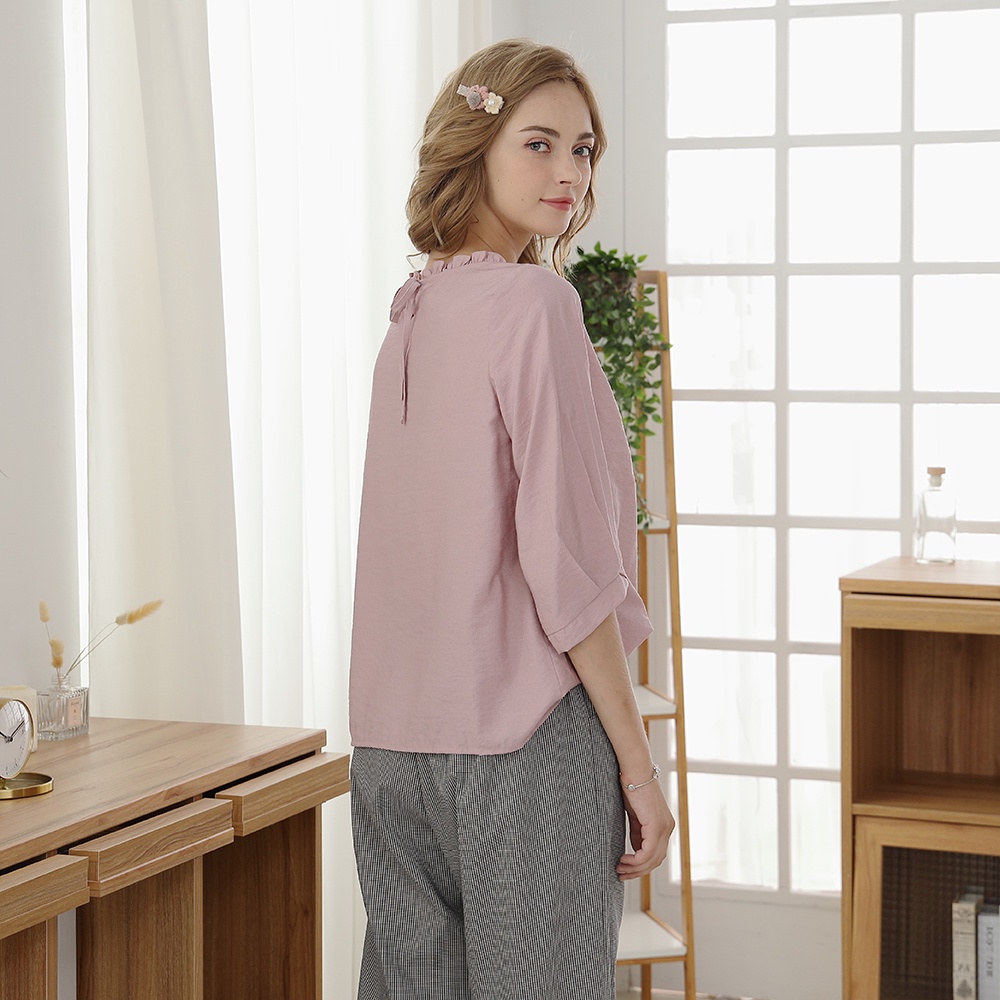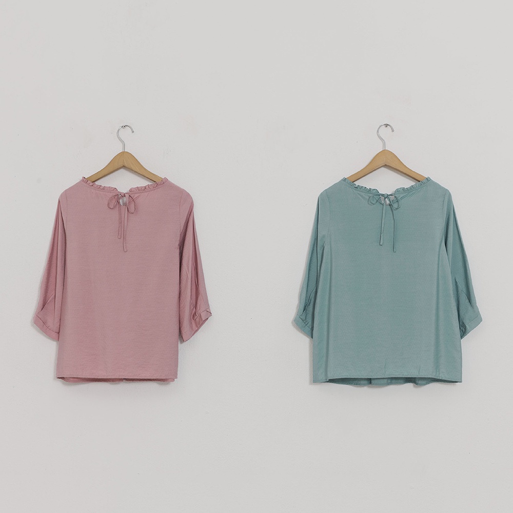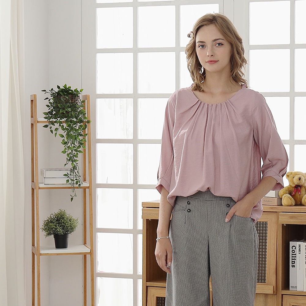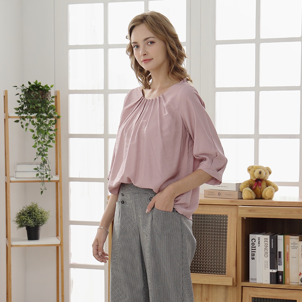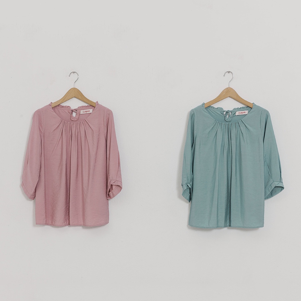 【CUMAR】壓褶設計泡泡袖-女七分袖襯衫 泡泡袖 藍 粉(二色/版型適中)藍色/M|粉色/M|藍色/L|粉色/LShirts & BlousesINLook 流行女裝品牌旗艦店