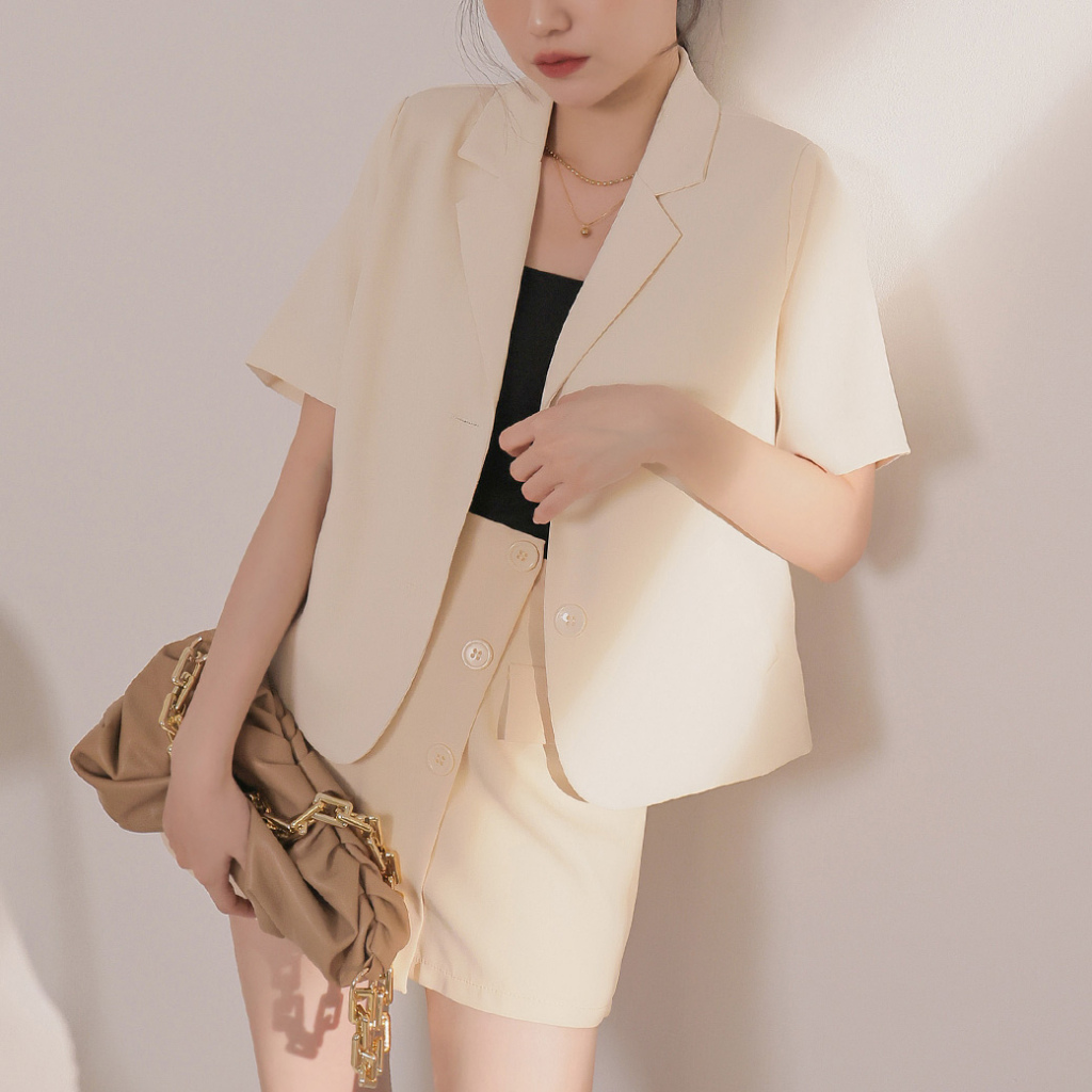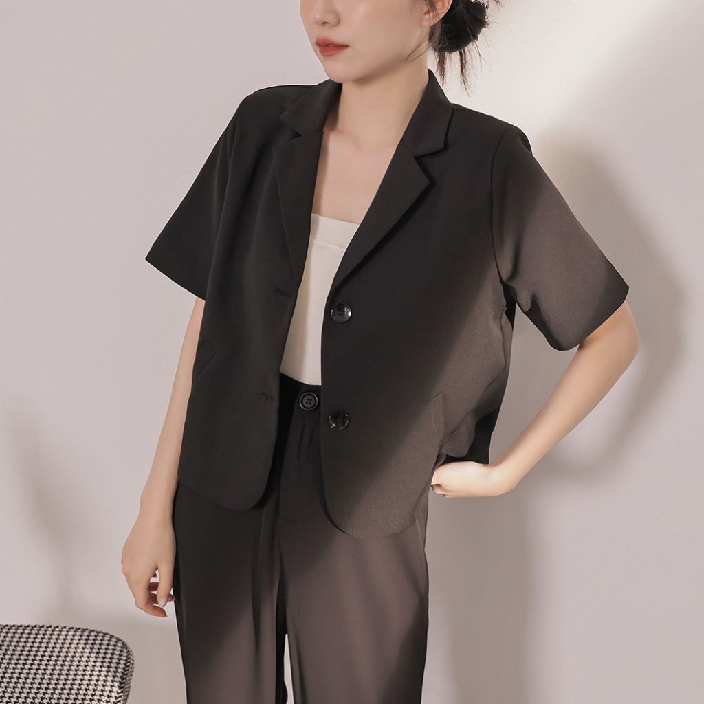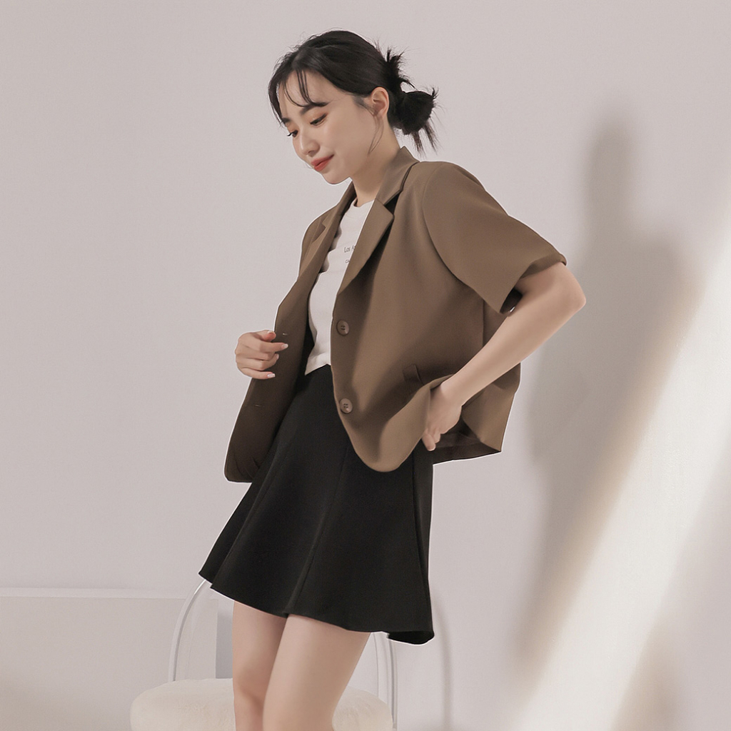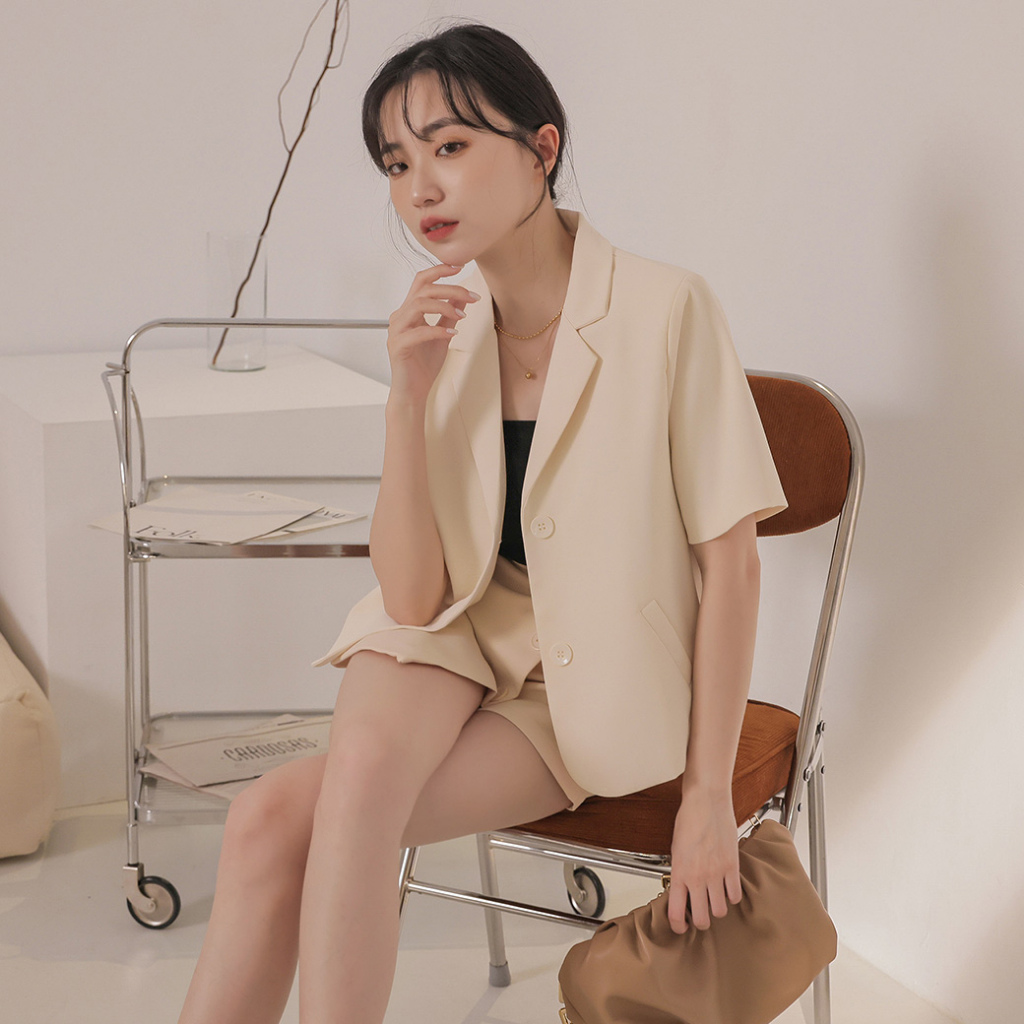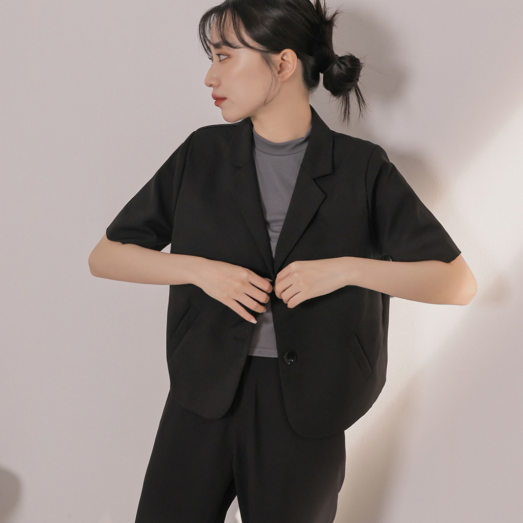 IN SHOP 薄墊肩短袖西裝外套-共3色【KT28744】黑|杏|咖BlazersIN’ SHOP 旗艦店