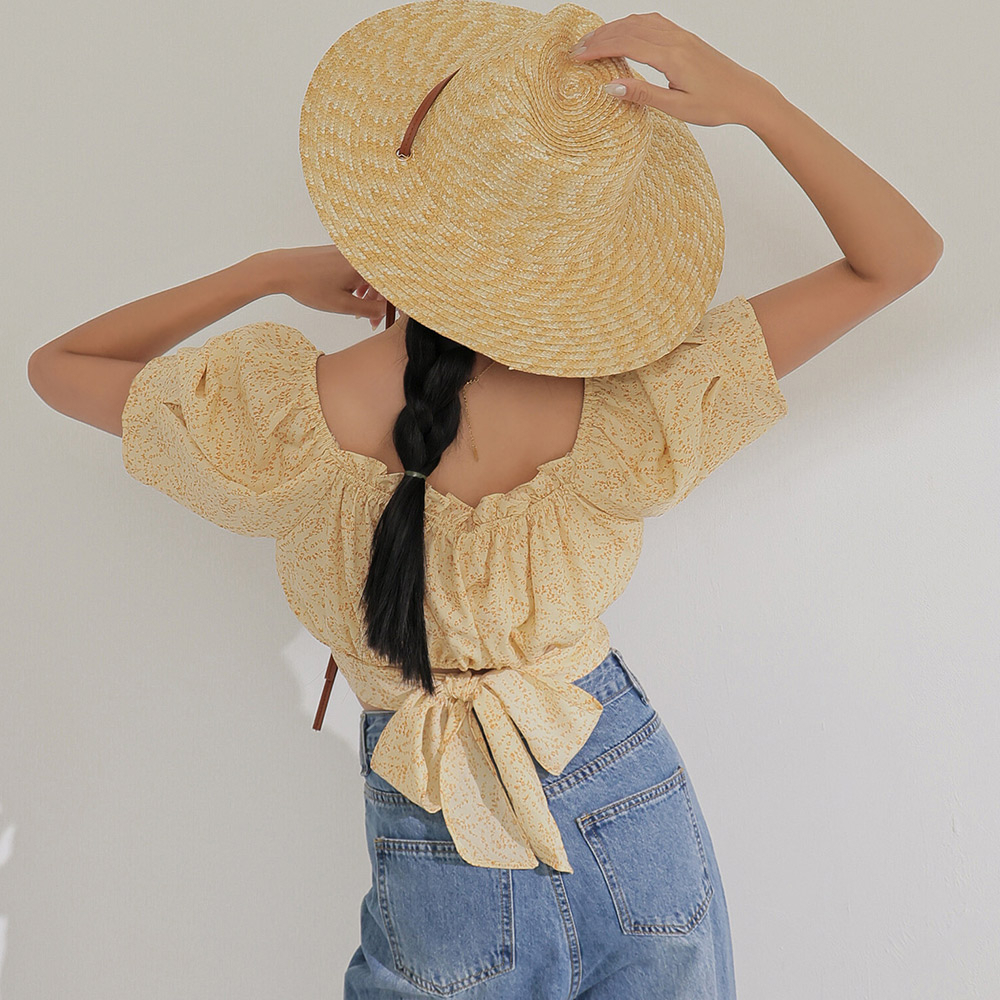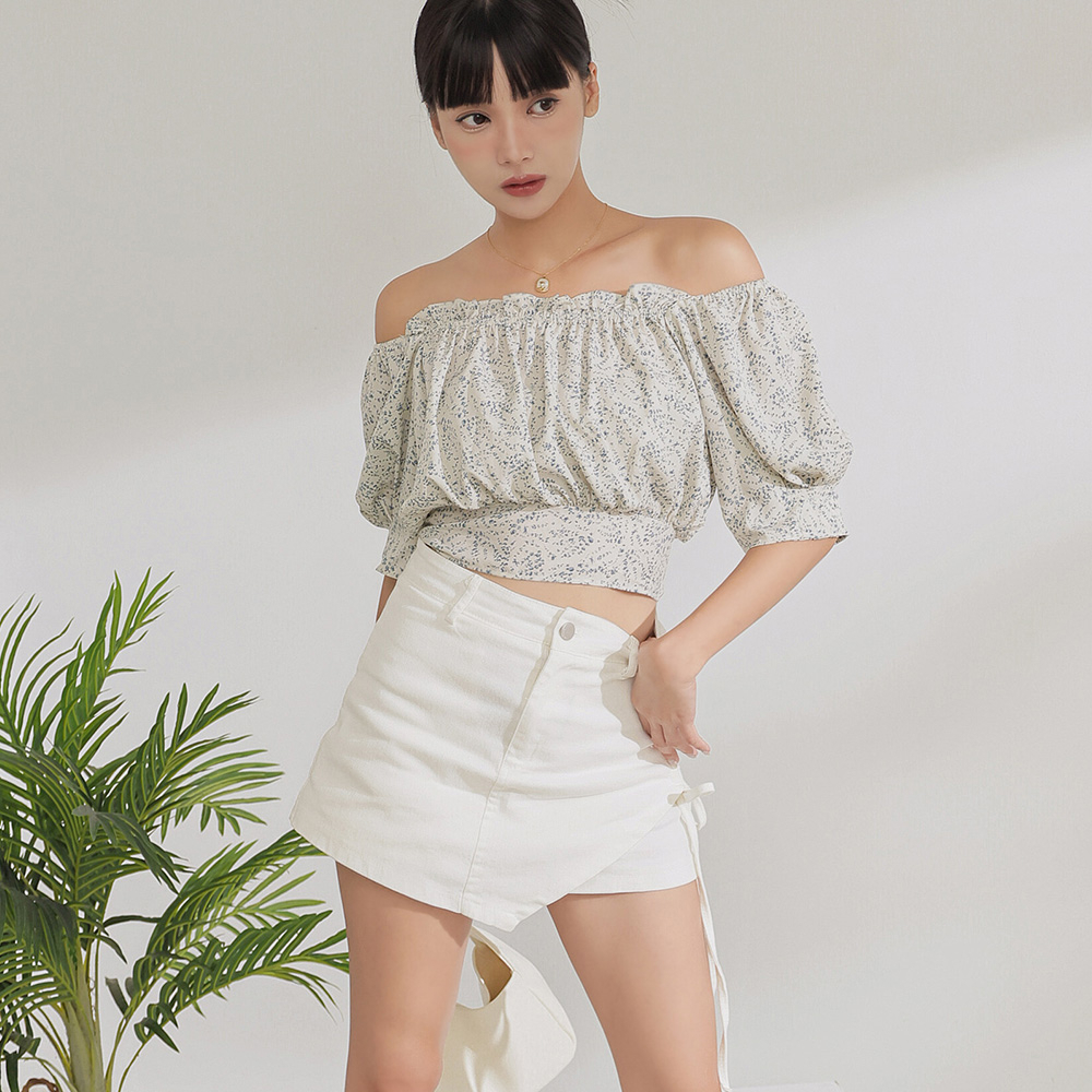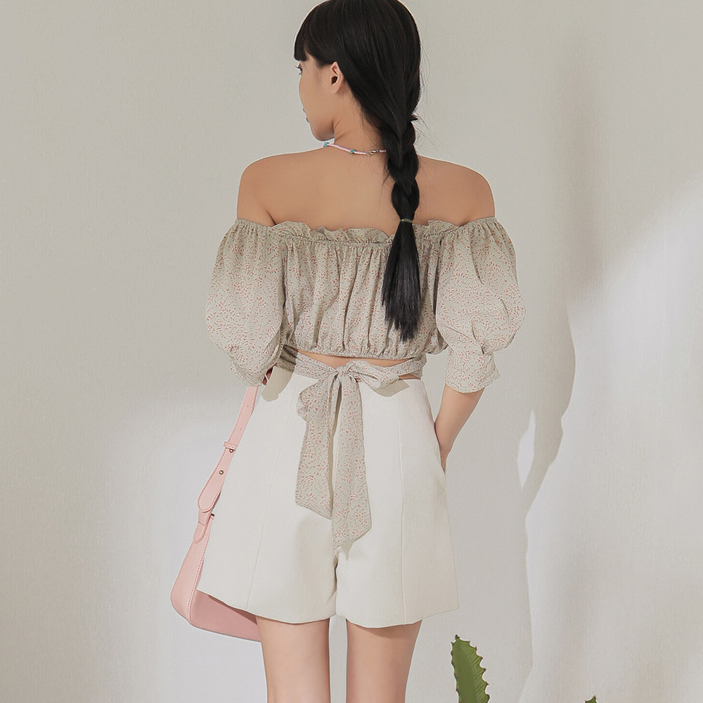 IN SHOP 碎花後綁帶短版上衣-共3色【KT223066】豆綠|藍|黃OthersIN’ SHOP 旗艦店