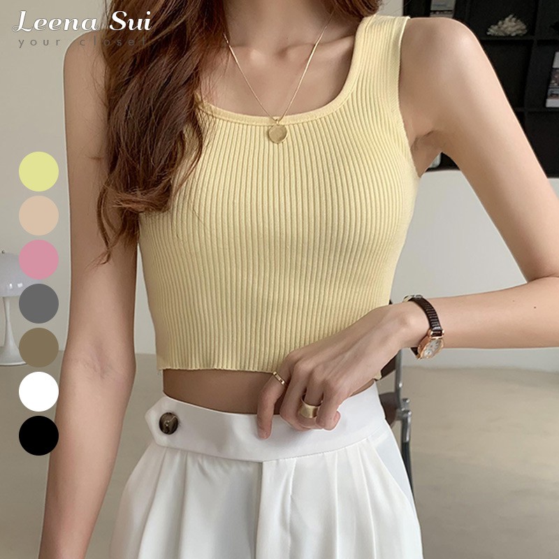 針織性感背心 短版上衣 女生大U領上衣小可愛 無袖背心 美式短款露臍內搭吊帶針織上衣 022256短版 / 白|短版 / 黑|短版 / 黃|短版 / 杏|短版 / 皮粉|短版 / 卡其|短版 / 灰Tanks & CamisolesLeenaSui ~台灣賣家 隔日到貨