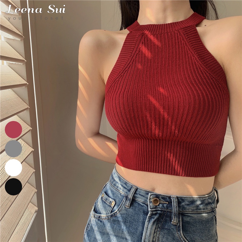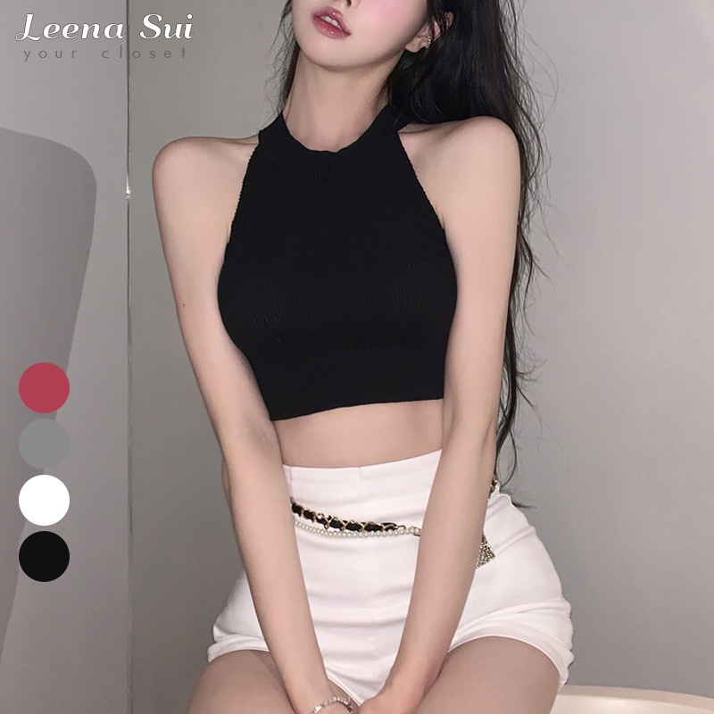 針織背心 短版上衣 針織背心 無袖針織掛脖緊身短款背心022588紅|灰|白|黑Tanks & CamisolesLeenaSui ~台灣賣家 隔日到貨