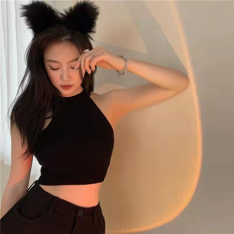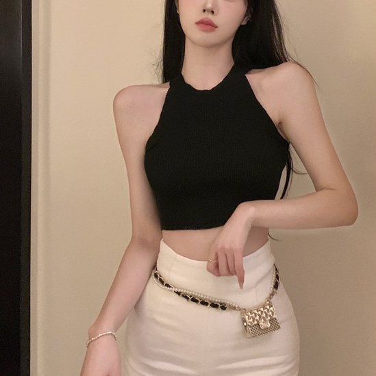 • 針織背心 短版上衣 針織背心 無袖針織掛脖緊身短款背心022588