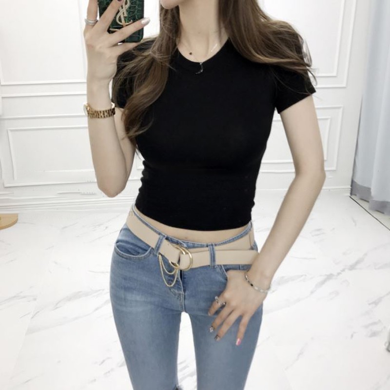 • 短袖T 短版上衣 短袖上衣 修身顯瘦露臍短袖修身短款T恤 012198