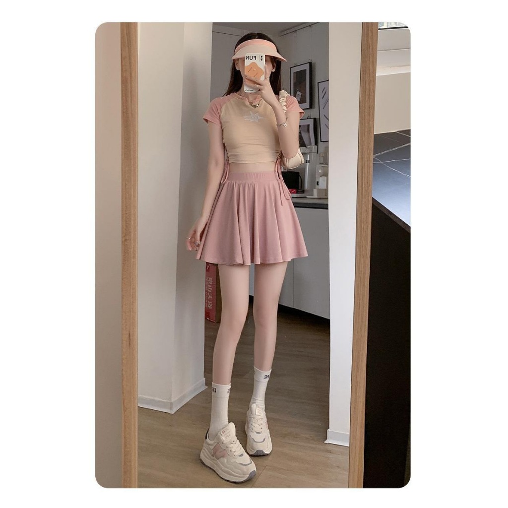 涼感褲裙 冰絲短圓裙大尺碼女裝遮肉防走光A字短裙 百褶褲裙053043
