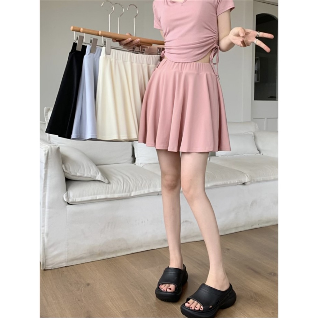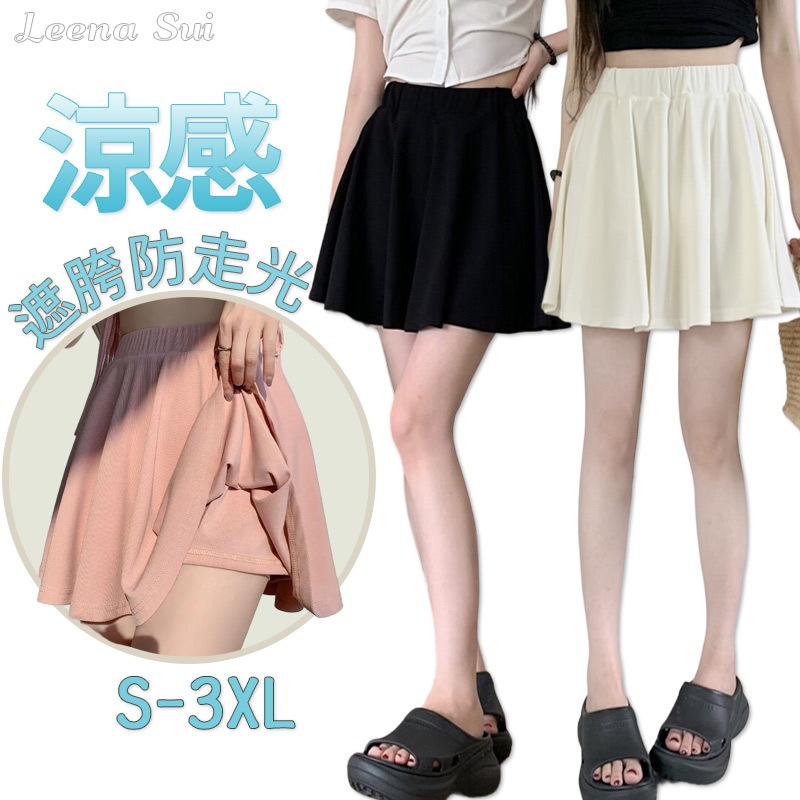 涼感褲裙 冰絲短圓裙大尺碼女裝遮肉防走光A字短裙 百褶褲裙053043黑,均碼 (S-L適穿)|黑,大碼(XL-3XL適穿)|杏,均碼 (S-L適穿)|杏,大碼(XL-3XL適穿)|粉,均碼 (S-L適穿)|粉,大碼(XL-3XL適穿)SkortsLeenaSui ~台灣賣家 隔日到貨