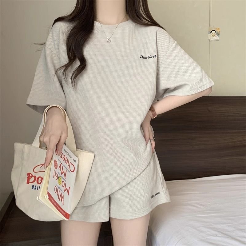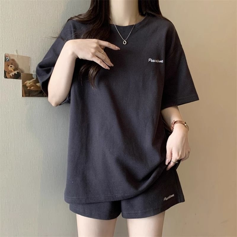 休閒套裝女 運動時尚寬鬆短袖短褲兩件套 小個子帥氣跑步服 短袖上衣+運動闊腿短褲 t恤套裝 女裝 衣服 居家服