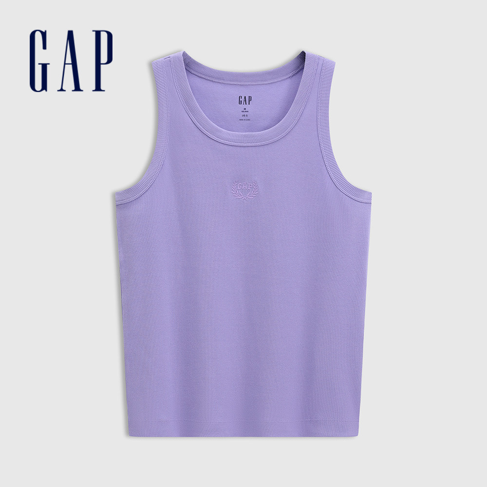 Gap 女裝 Logo刺繡圓領針織背心 女友T系列-紫色(766138)M|L|XL|XS|SVestsGap官方旗艦店