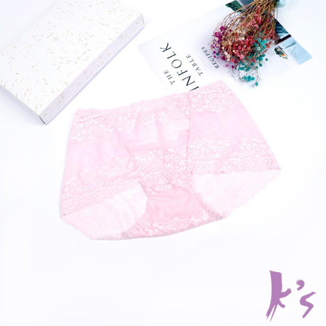 【K’s凱恩絲】粉嫩透花蕾絲包臀專利有氧蠶絲內褲(蠶絲褲底)MPantiesKS凱恩絲蠶絲塑身內衣