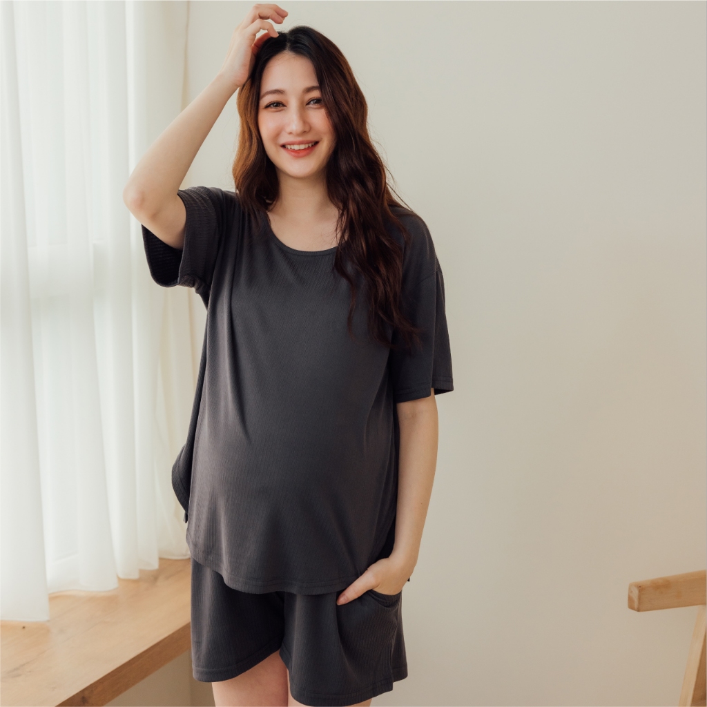 Mamamia孕婦裝 極舒適涼感絲棉居家服 M~XL 居家套裝 短袖 孕婦睡衣 月子服 孕婦裝 [A1911]深灰,XL|深灰,M|深灰,L|咖啡,M|咖啡,L|咖啡,XLMaternity SetsMamamia孕婦裝
