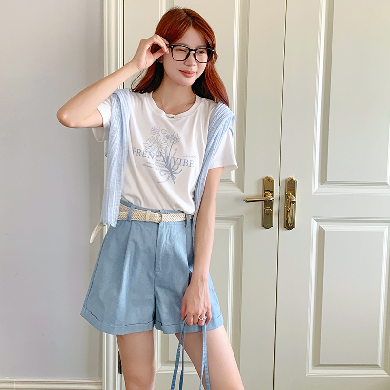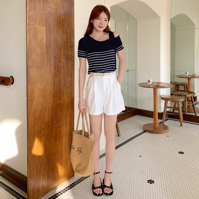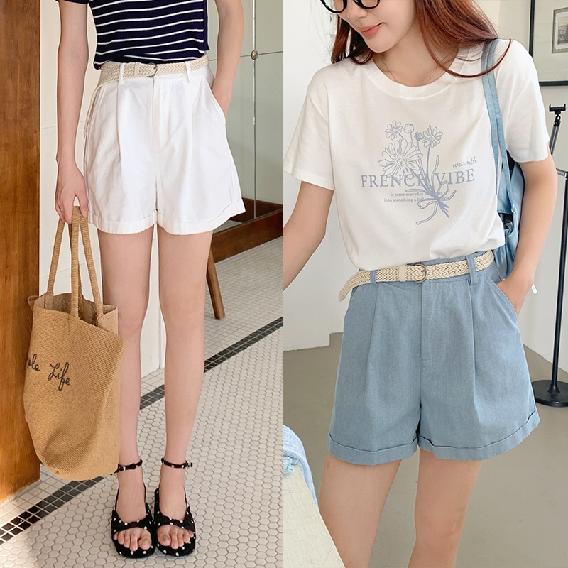【HARPER】日常通勤反折短褲 附皮帶 | 現貨 短褲 褲子【PNB97231J】白,S|白,M|白,L|白,XL|藍,S|藍,M|藍,L|藍,XLShortsHARPER