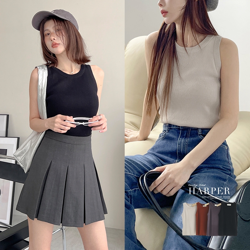 【HARPER】厚磅密實削肩背心 | 現貨 無袖上衣 削肩 背心 秋冬百搭【CLC54939H】深灰,F|黑,F|灰杏,F|焦糖,FTanks & CamisolesHARPER