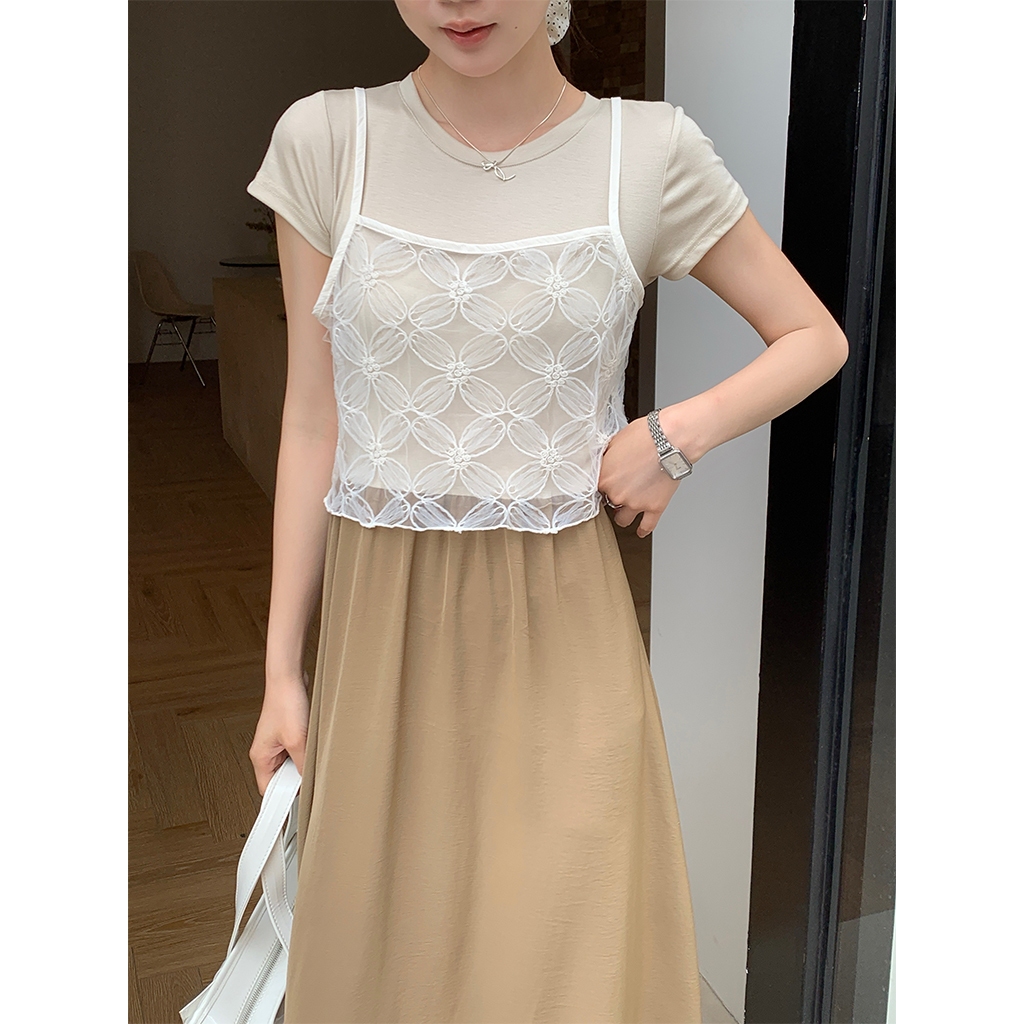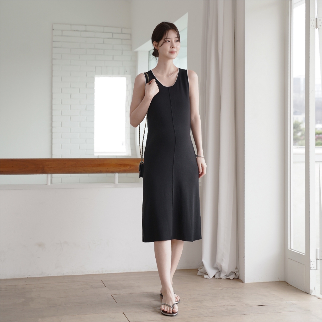 Mamamia孕婦裝 貴氣簡約邊條孕婦洋裝 孕婦裝 孕婦裙 背心裙 牛仔 短袖 孕婦穿搭 [C3228]杏|黑Maternity DressesMamamia孕婦裝