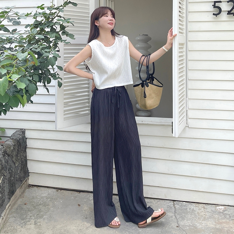 【HARPER】品牌自訂立體波紋綁帶寬褲 | 現貨 長褲 褲子 寬褲【PNB46620J】深灰,F|黑,FPantsHARPER