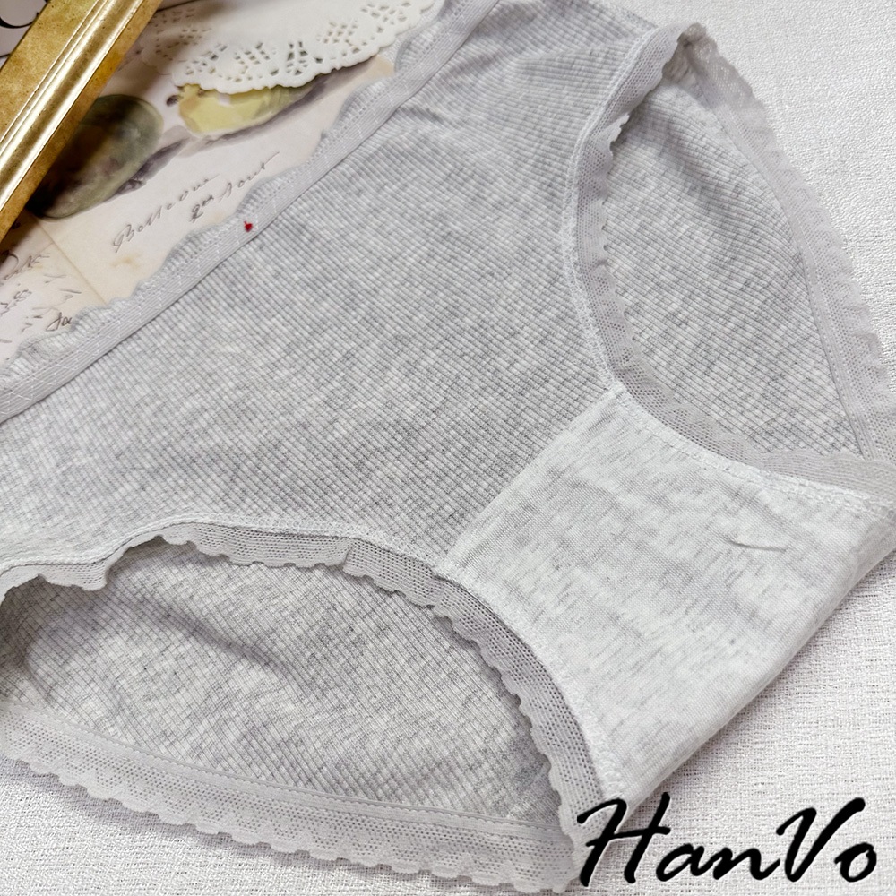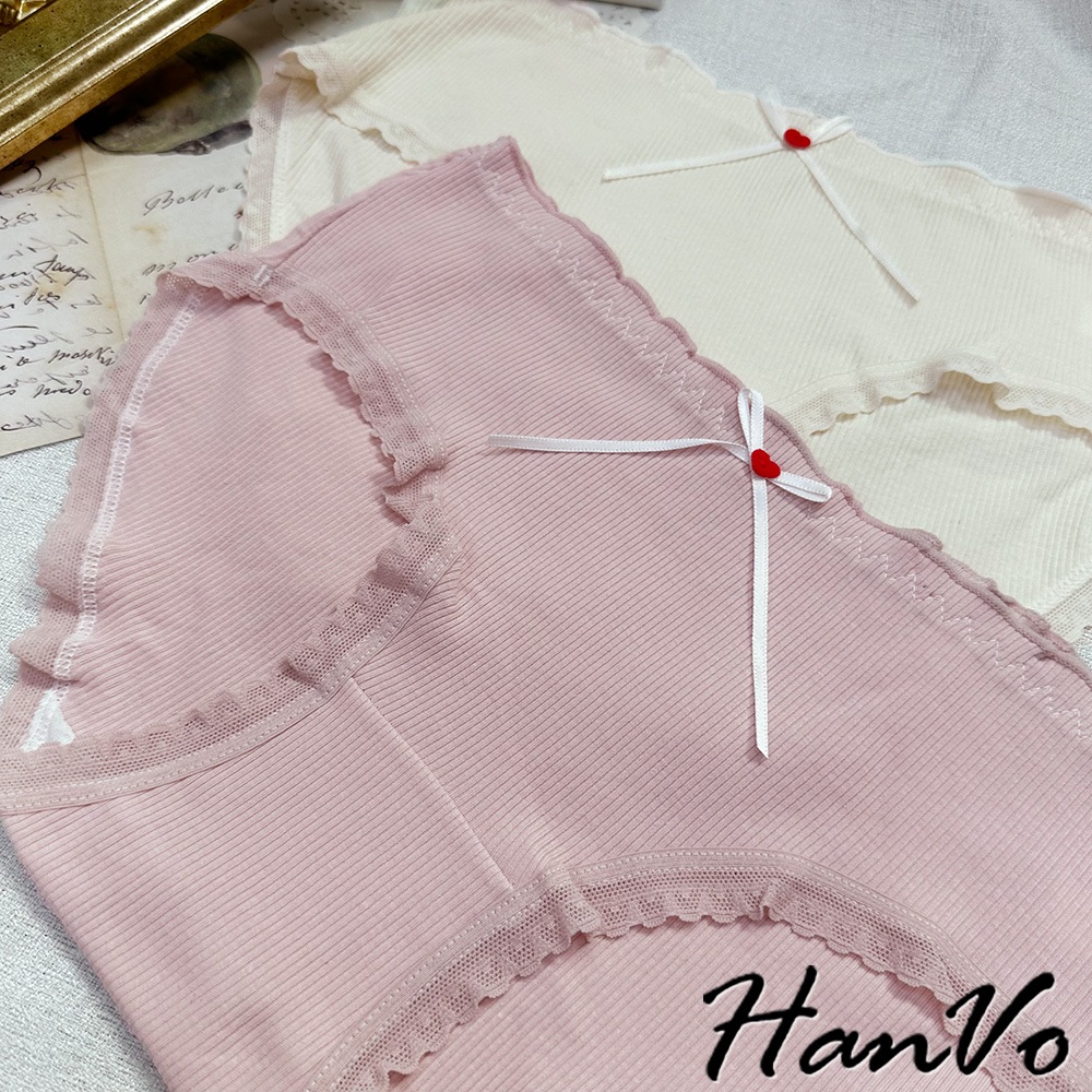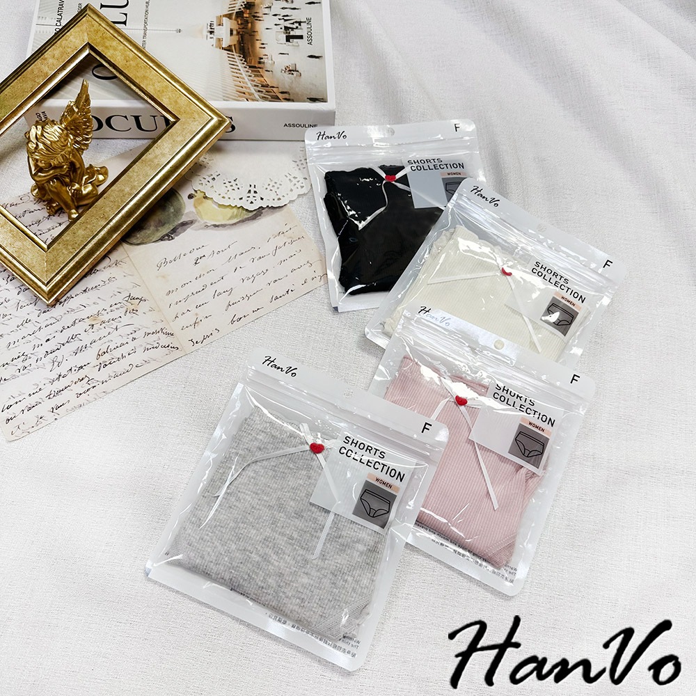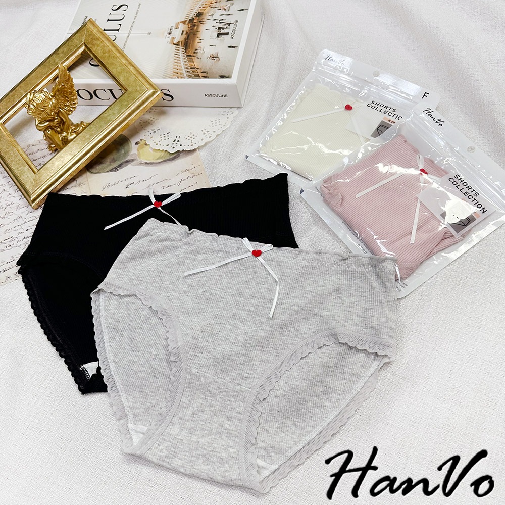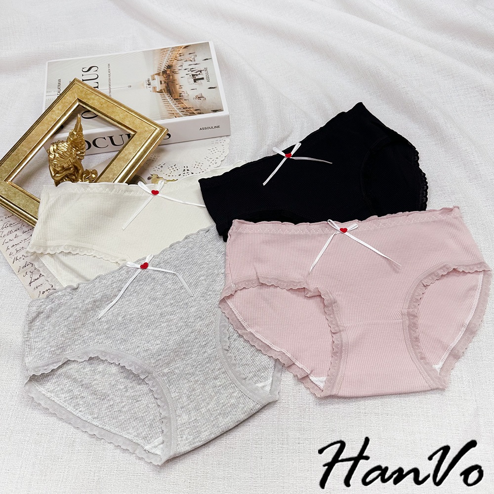【HanVo】小紅愛心蝴蝶結螺紋內褲 柔軟透氣純棉中腰 舒適親膚三角褲 獨立包裝 流行少女內褲 內著 A11-5727奶油杏|夜幕黑|少女粉|雲霧灰PantiesHanVo Wear Collection