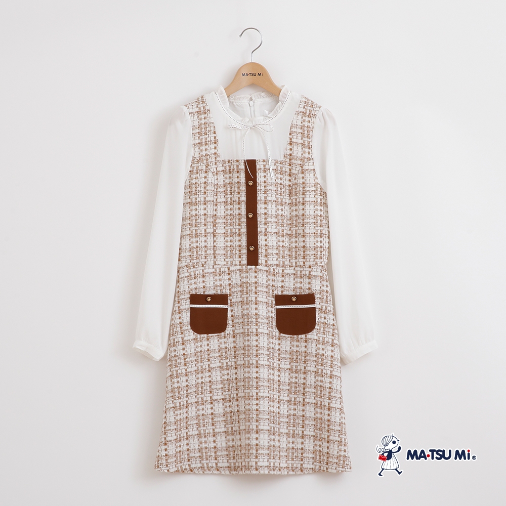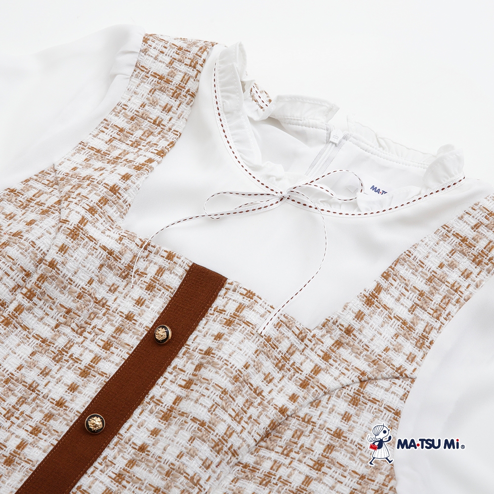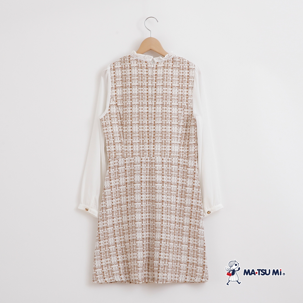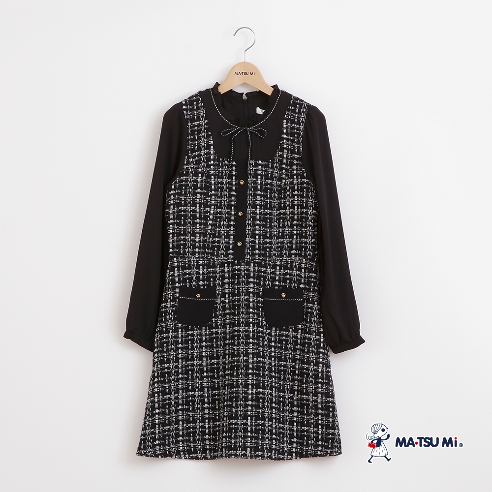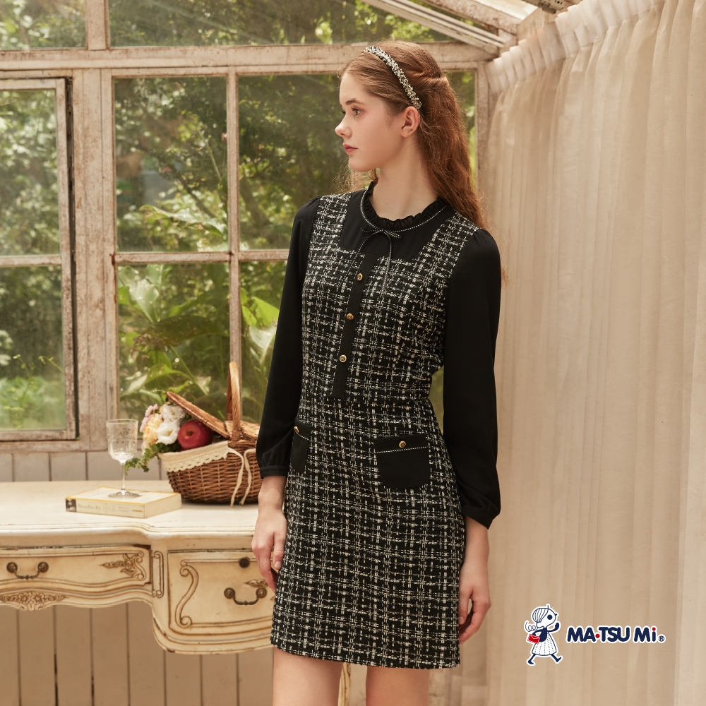 MA‧TSU Mi 小香風粗花呢異材質拼接假兩件洋裝(咖.黑)咖,XL|黑,S|黑,M|黑,L|黑,XL|咖,S|咖,M|咖,LMA•TSU Mi瑪之蜜官方旗艦店