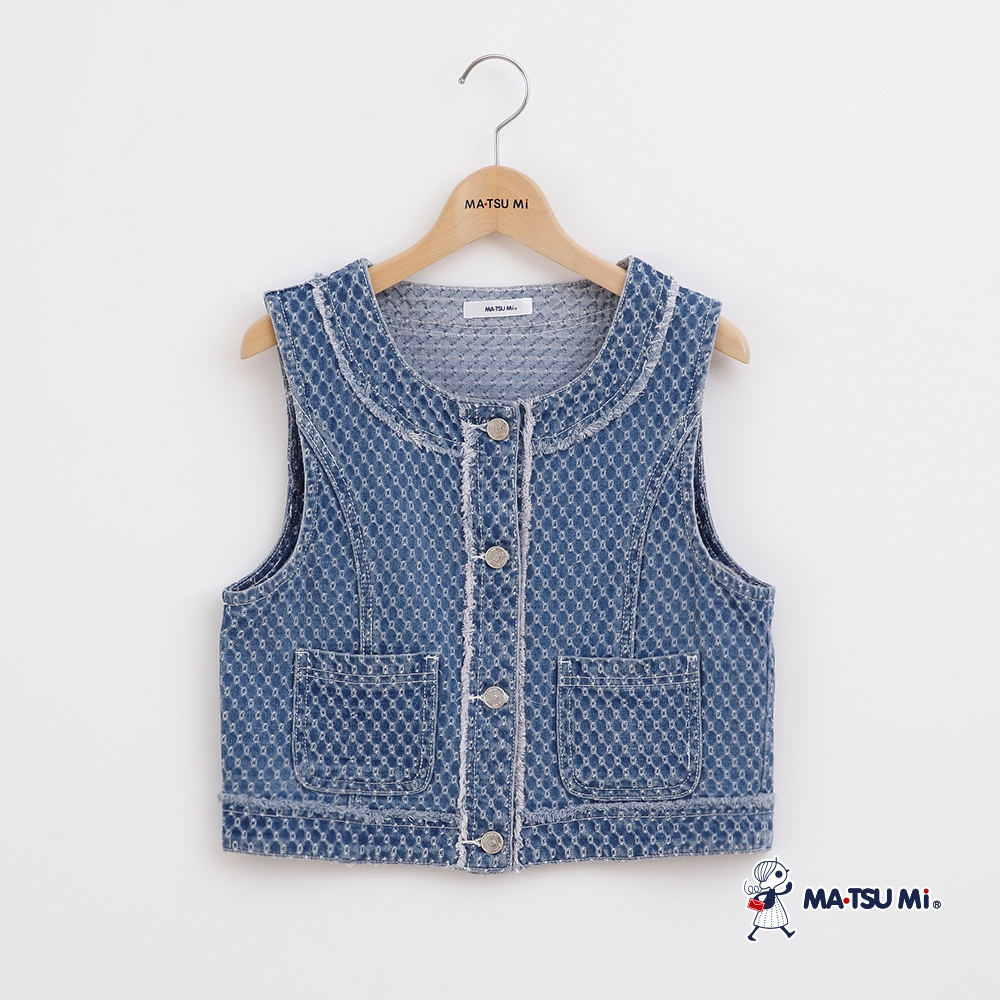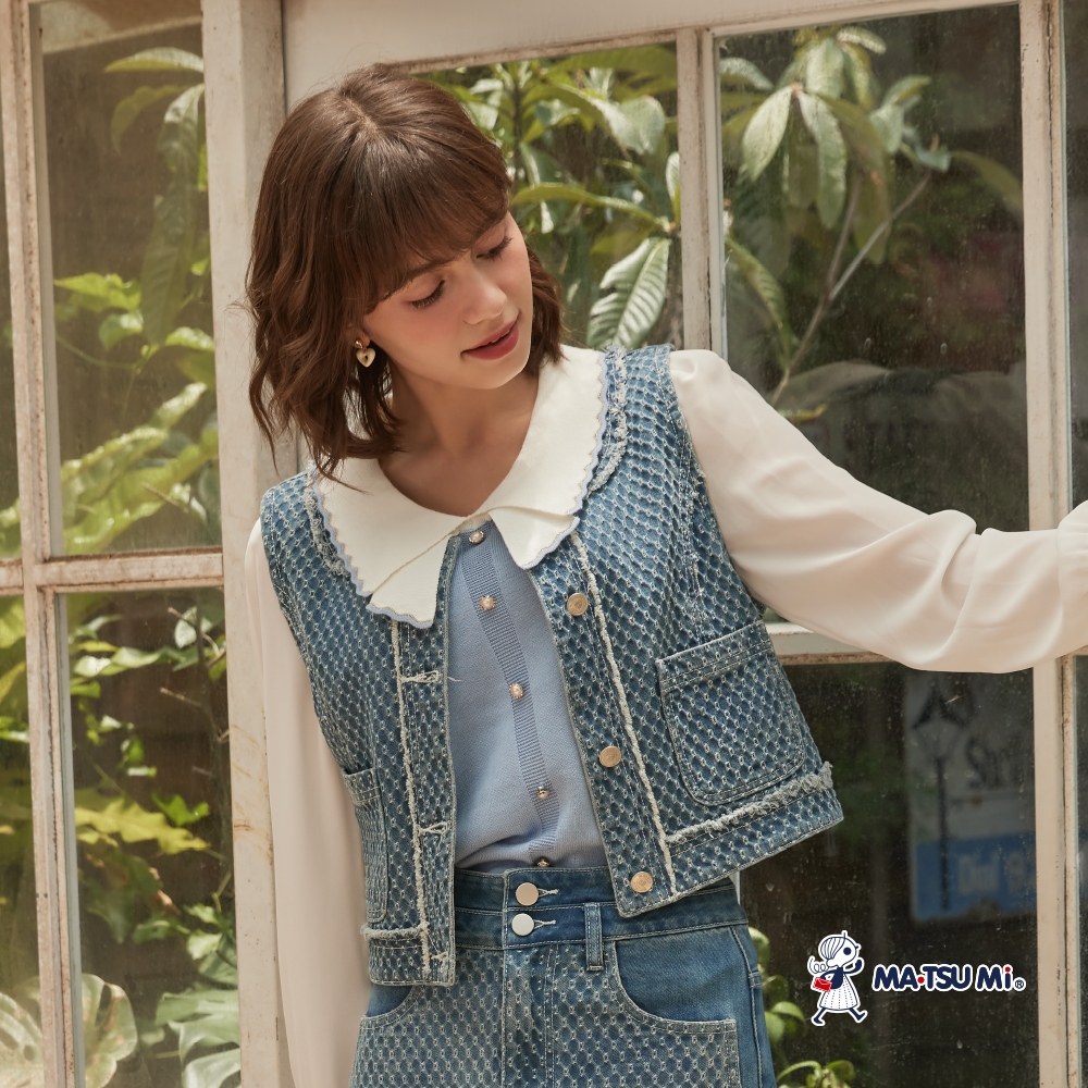 MA‧TSU Mi 小香風織紋線條抽鬚背心(水藍)水藍,S|水藍,M|水藍,L|水藍,XLVestsMA•TSU Mi瑪之蜜官方旗艦店