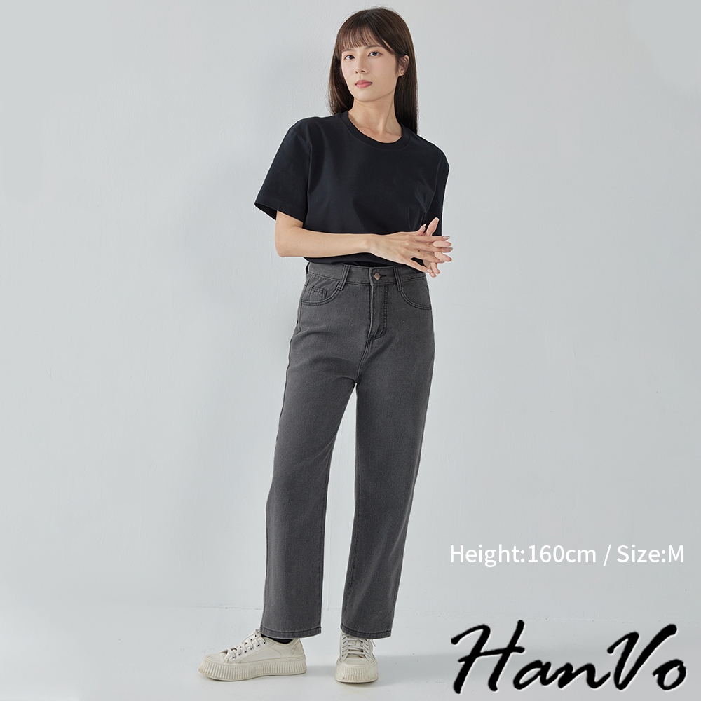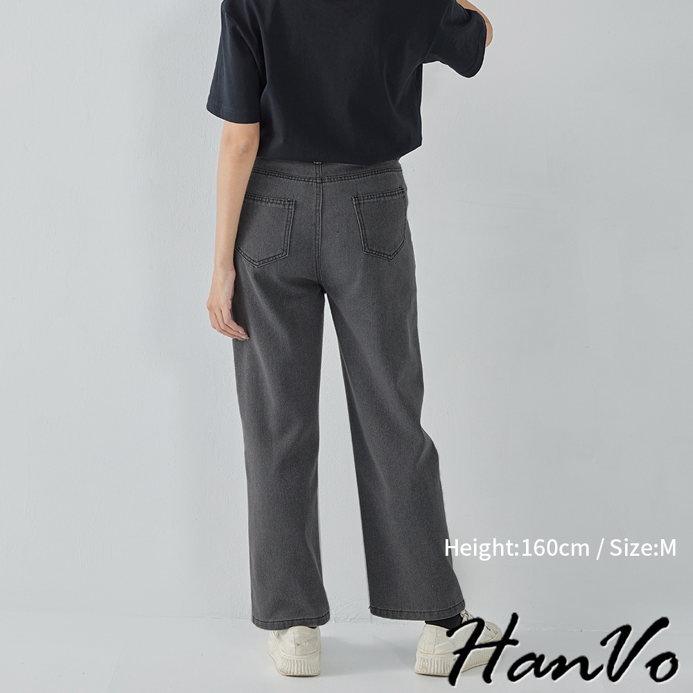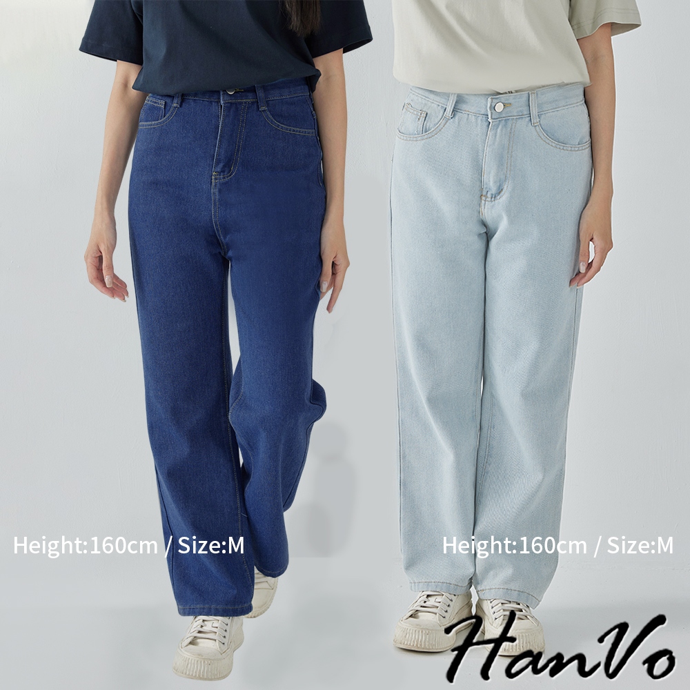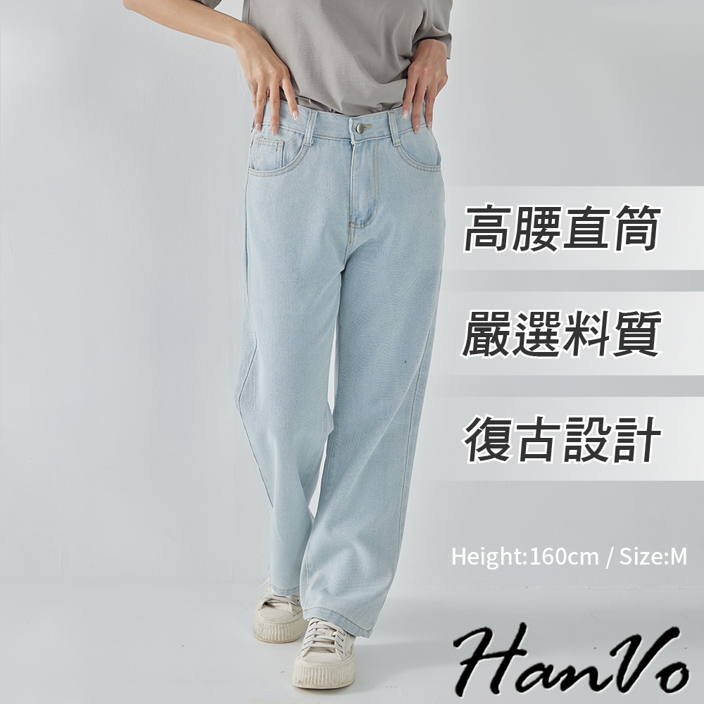 【HanVo】高腰顯瘦直筒牛仔褲 復古有型設計感寬鬆長褲 韓系休閒 女生長褲 A04-2622黑灰,S|黑灰,M|黑灰,L|深藍,S|深藍,M|深藍,L|淺藍,S|淺藍,M|淺藍,L|白色,S|白色,M|白色,LHanVo Wear Collection