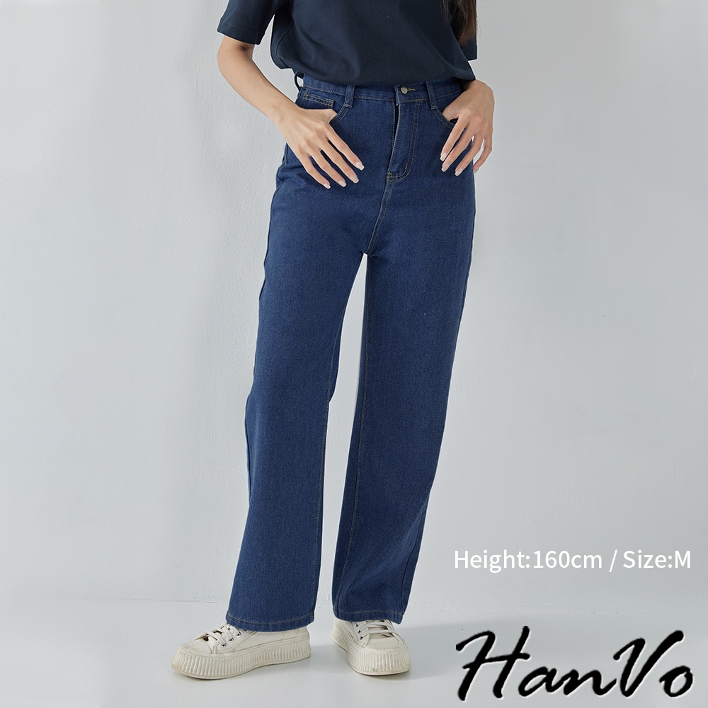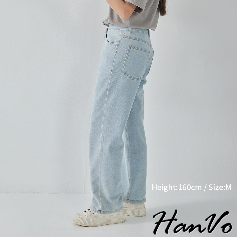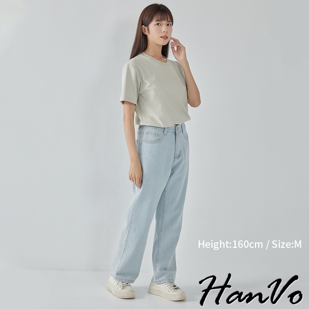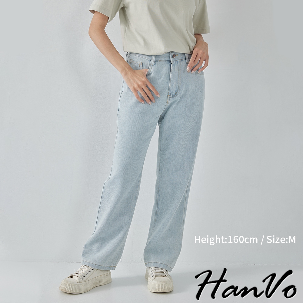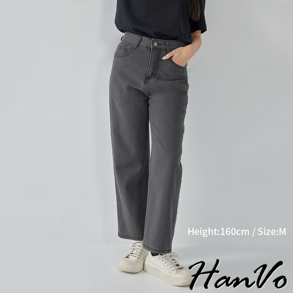 【HanVo】高腰顯瘦直筒牛仔褲 復古有型設計感寬鬆長褲 韓系休閒 女生長褲 A04-2622黑灰,S|黑灰,M|黑灰,L|深藍,S|深藍,M|深藍,L|淺藍,S|淺藍,M|淺藍,L|白色,S|白色,M|白色,LHanVo Wear Collection