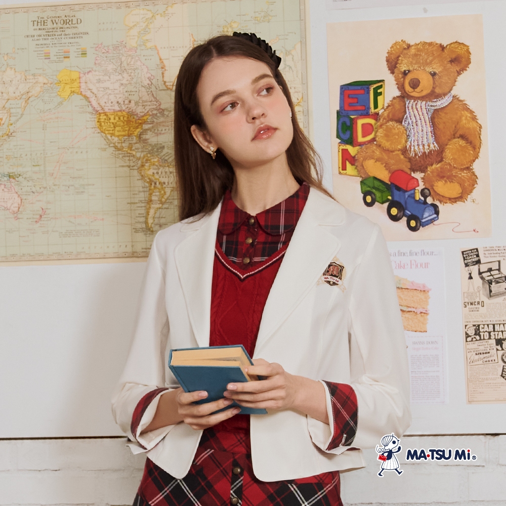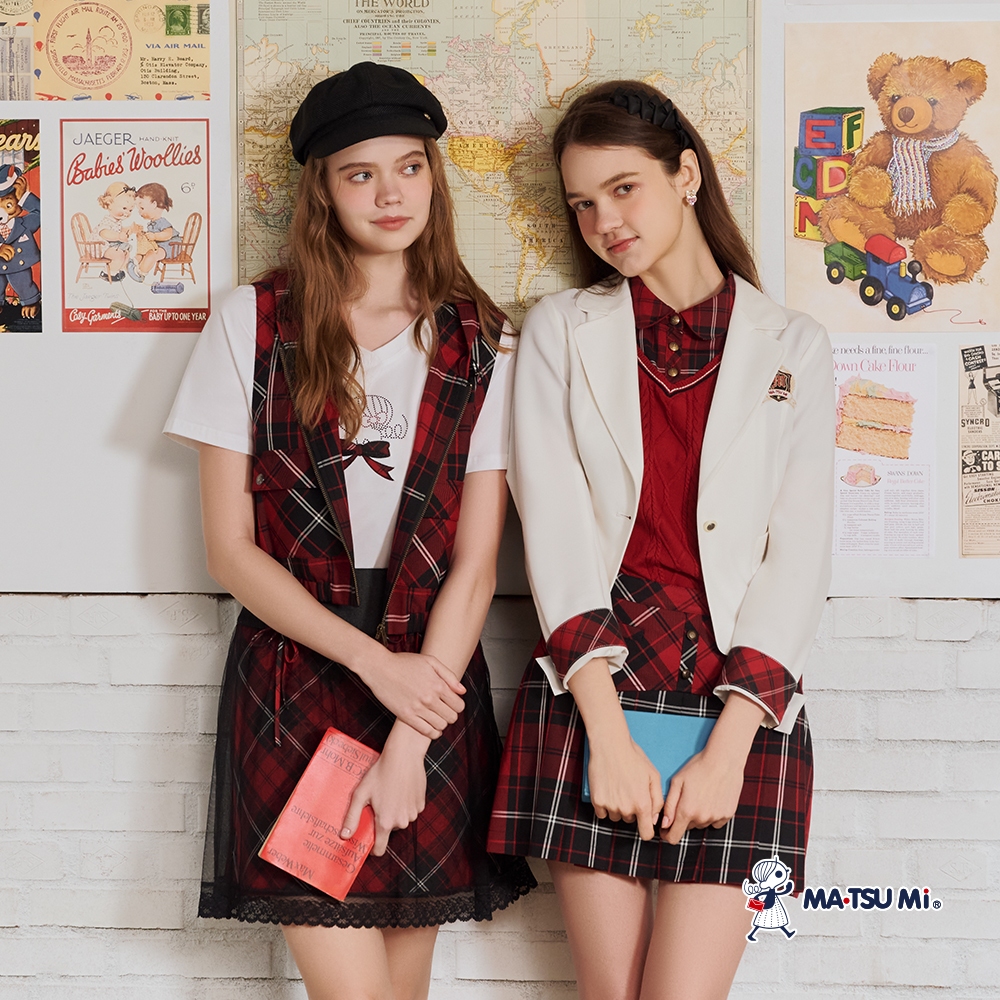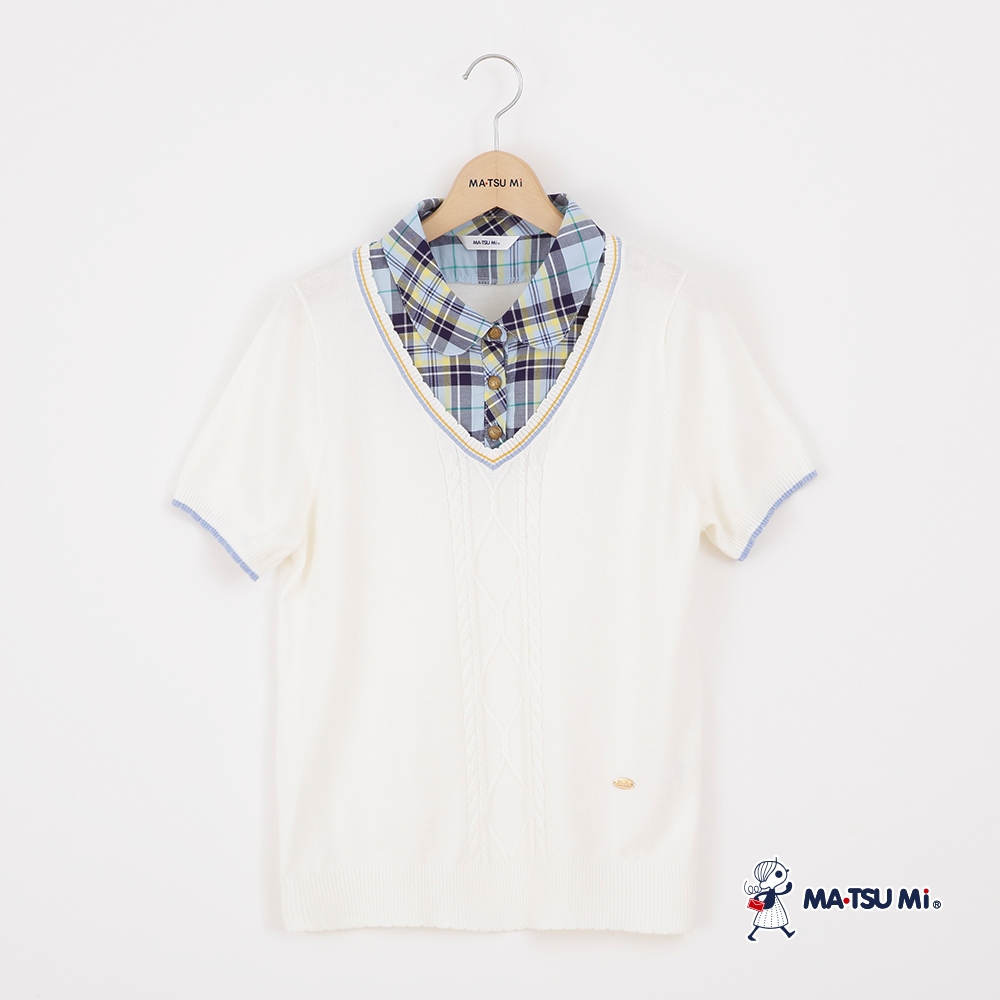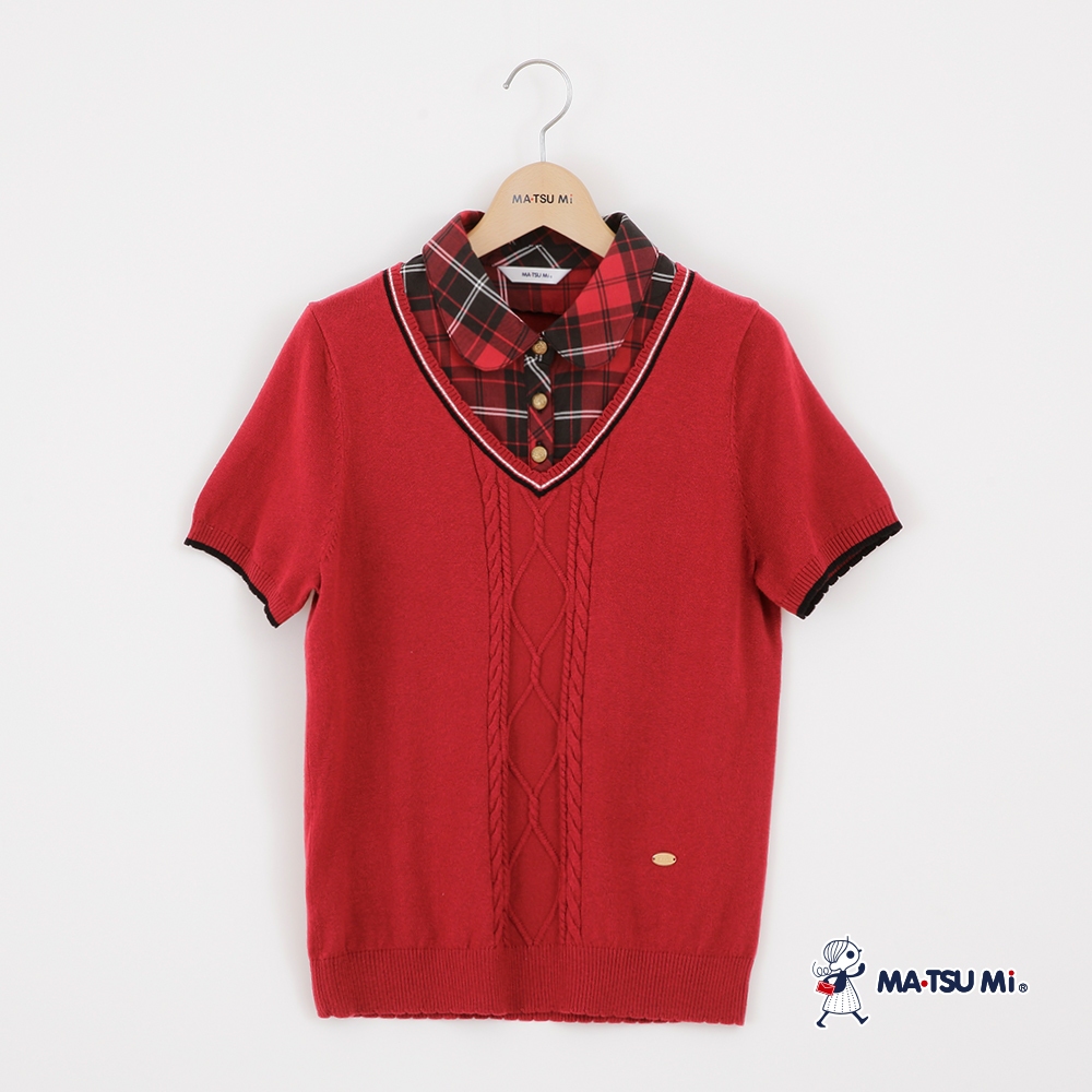 MA‧TSU Mi 假兩件式格紋翻領拼接玲格紋造型針織上衣(白.紅)白,S|白,M|白,L|白,XL|紅,S|紅,M|紅,L|紅,XLMA•TSU Mi瑪之蜜官方旗艦店
