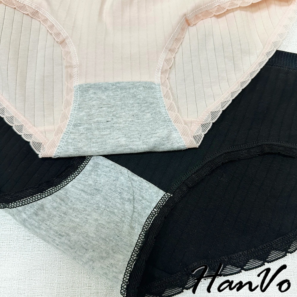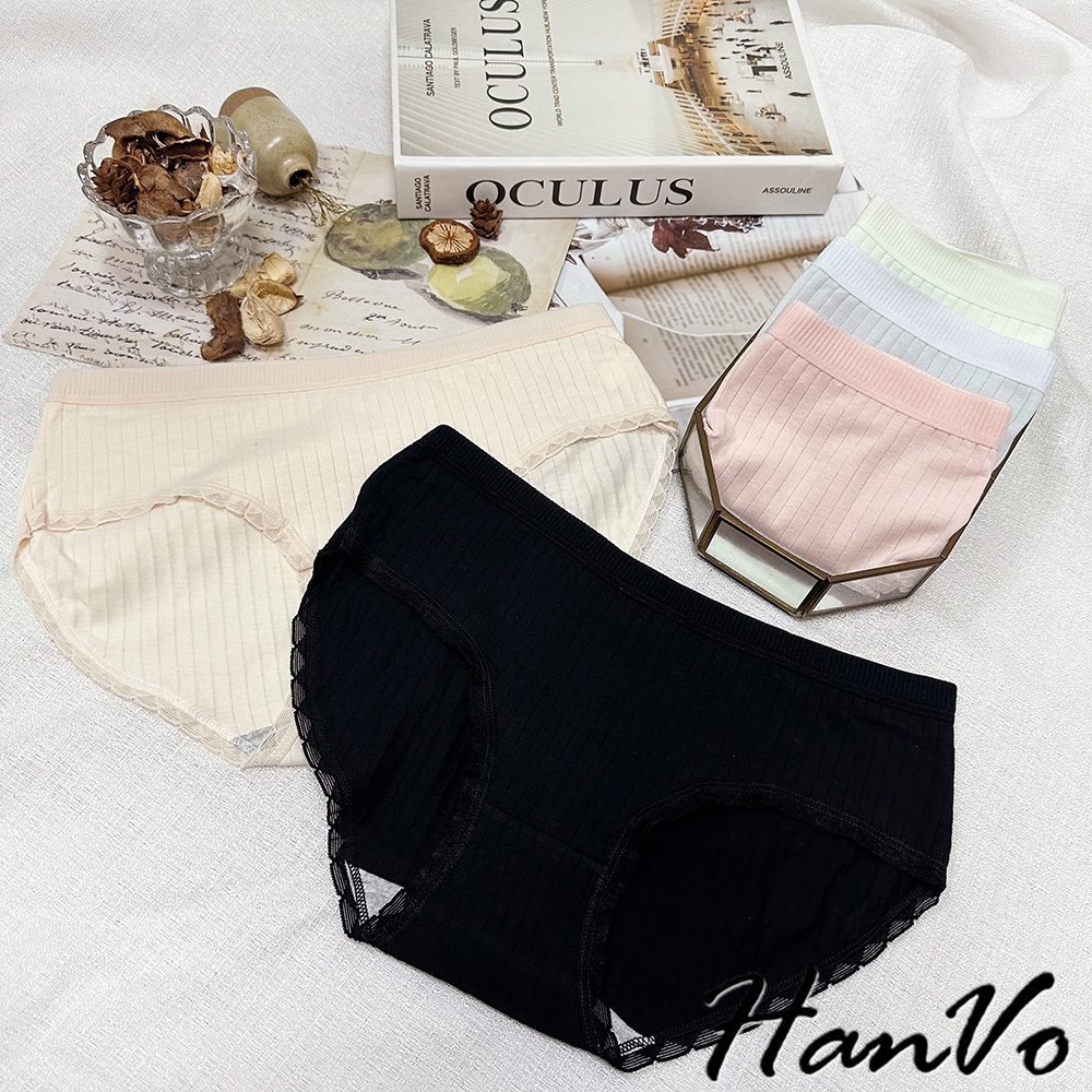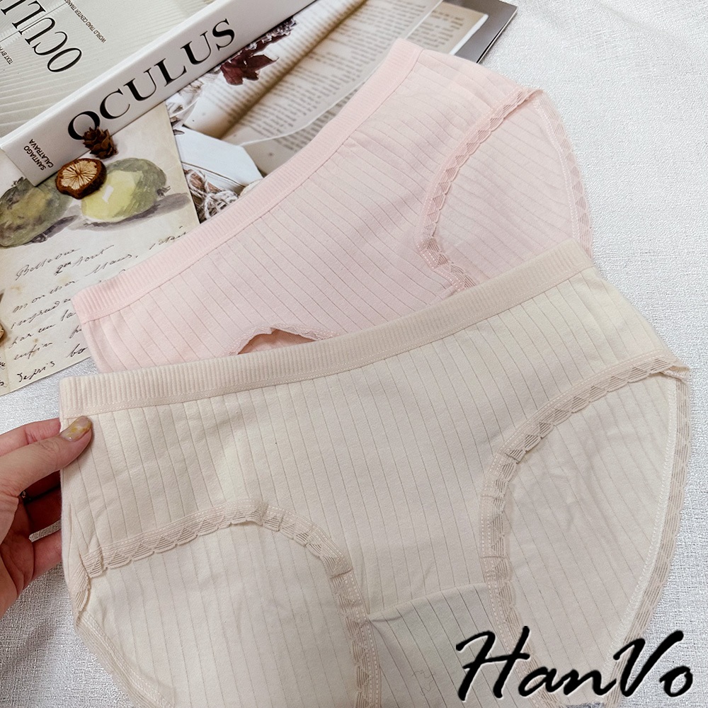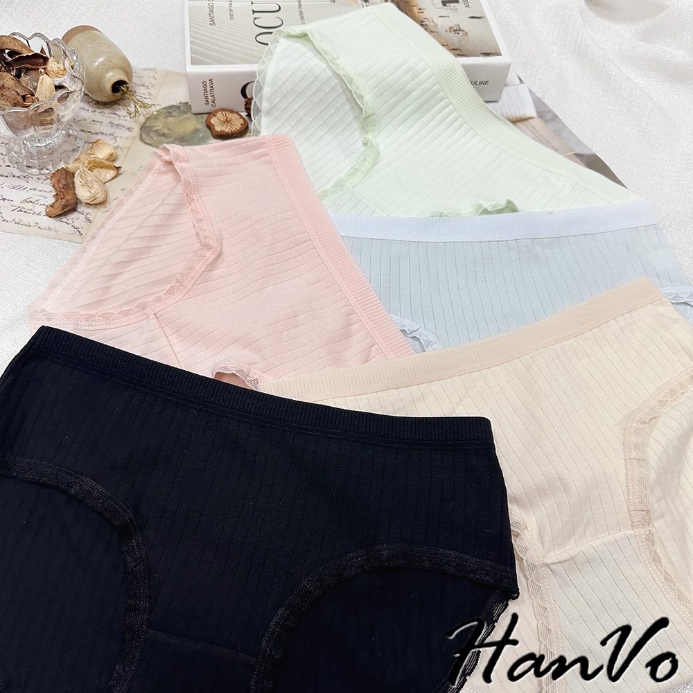 【HanVo】小清新直紋蕾絲花邊內褲 獨立包裝 中腰 吸濕排汗透氣純棉 透氣內褲 女內褲 內褲 A11-5866森林黑|花瓣粉|柔粉膚|果漾綠|寶貝藍PantiesHanVo Wear Collection