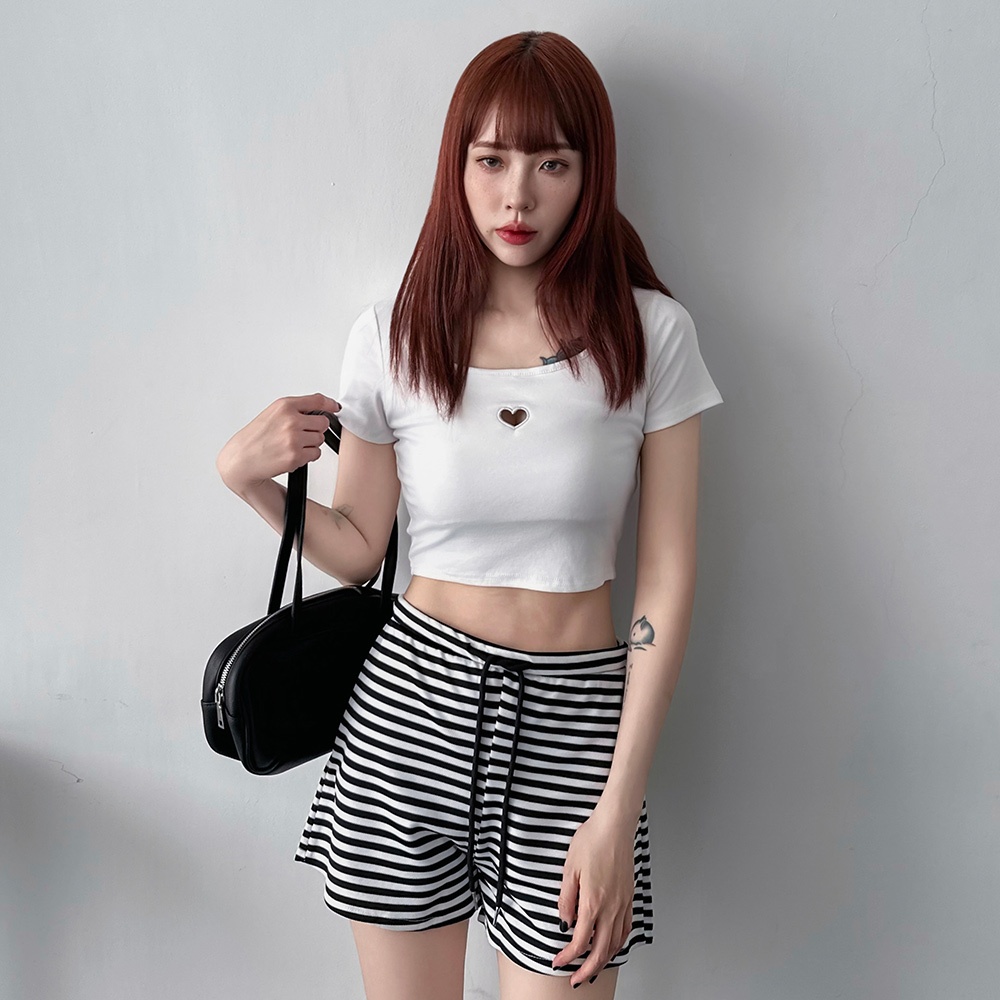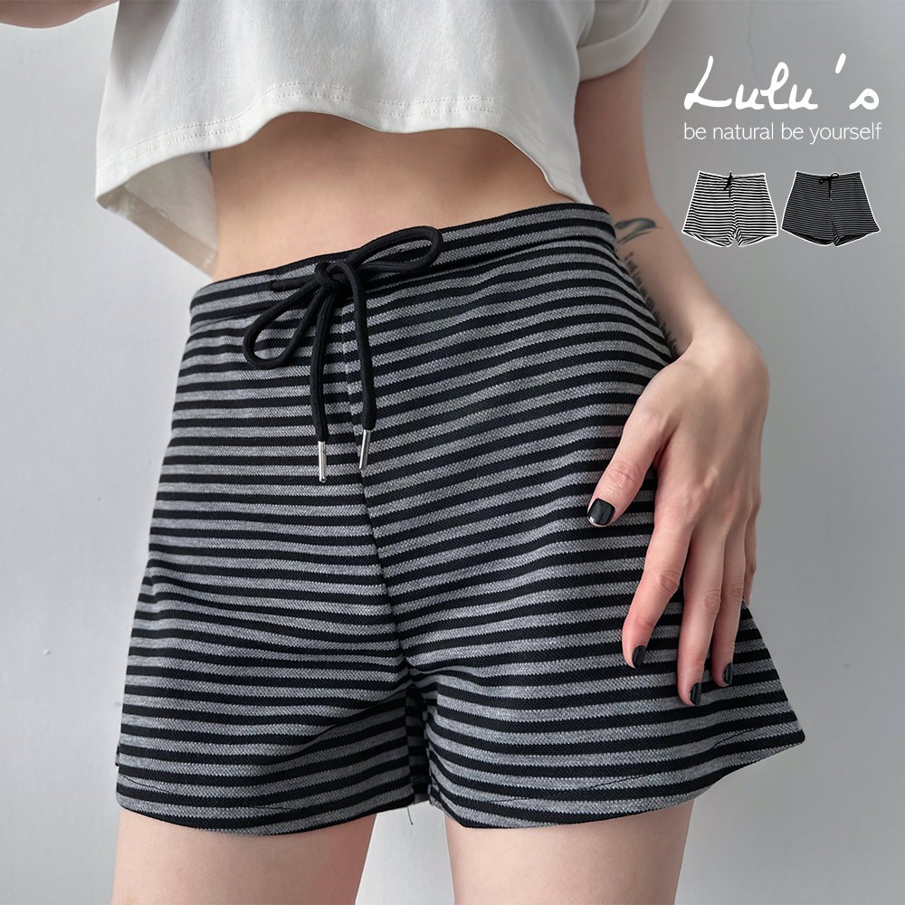 LULUS/穿梭韓國街頭抽繩橫紋短褲2色【A04250165】高腰 彈性褲 250730深灰|黑白條ShortsLULUS