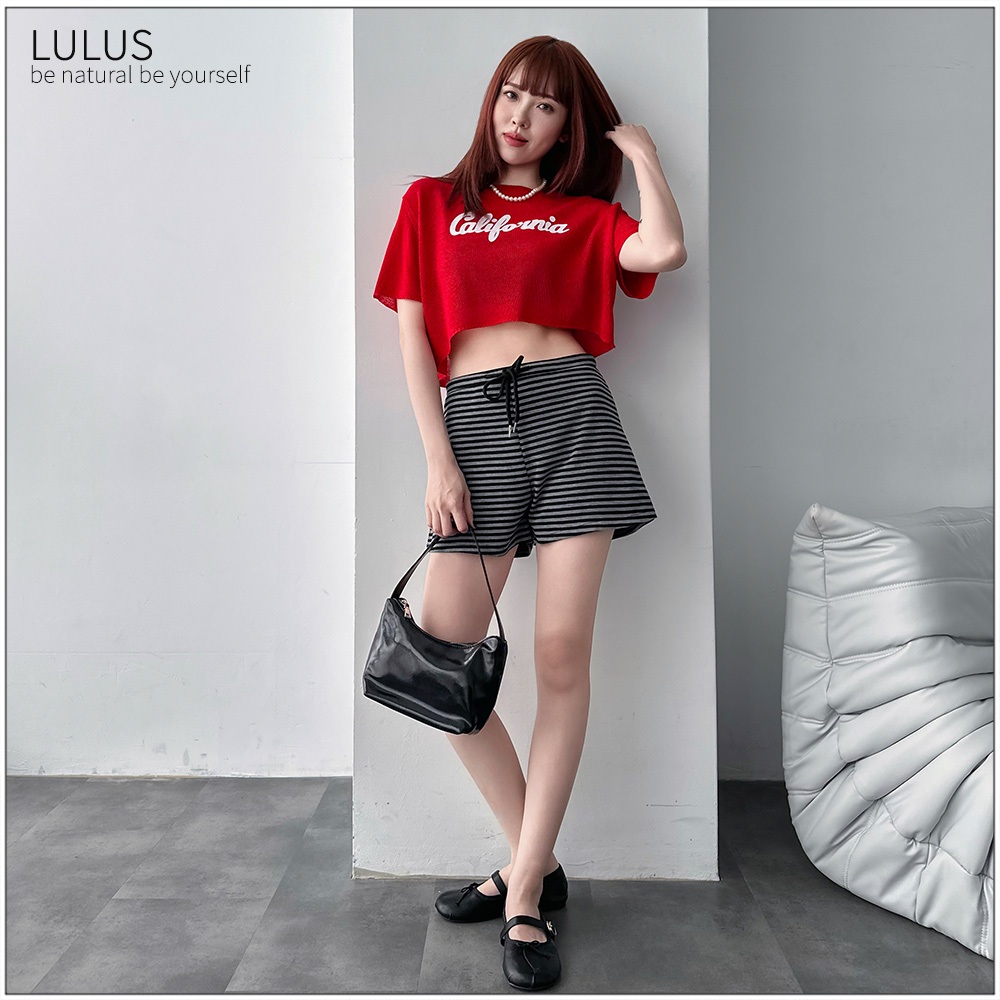 LULUS/穿梭韓國街頭抽繩橫紋短褲2色【A04250165】高腰 彈性褲 250730