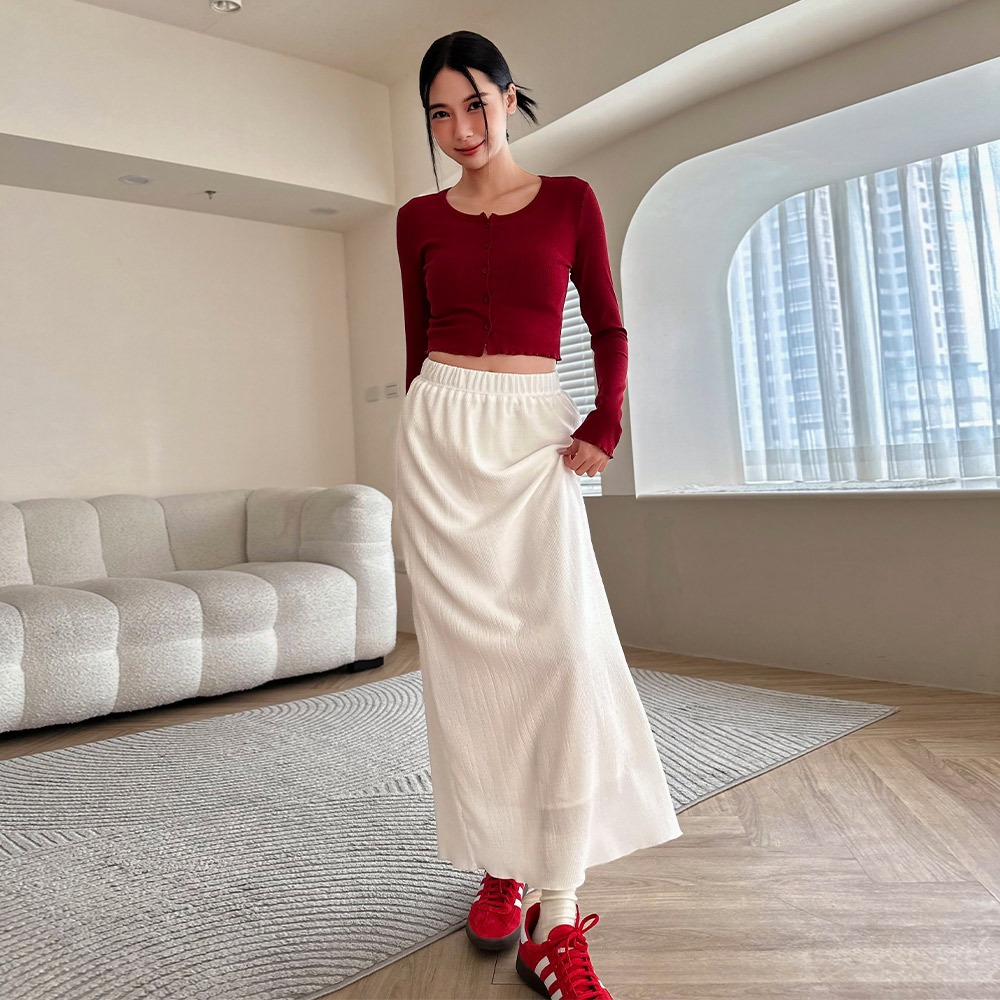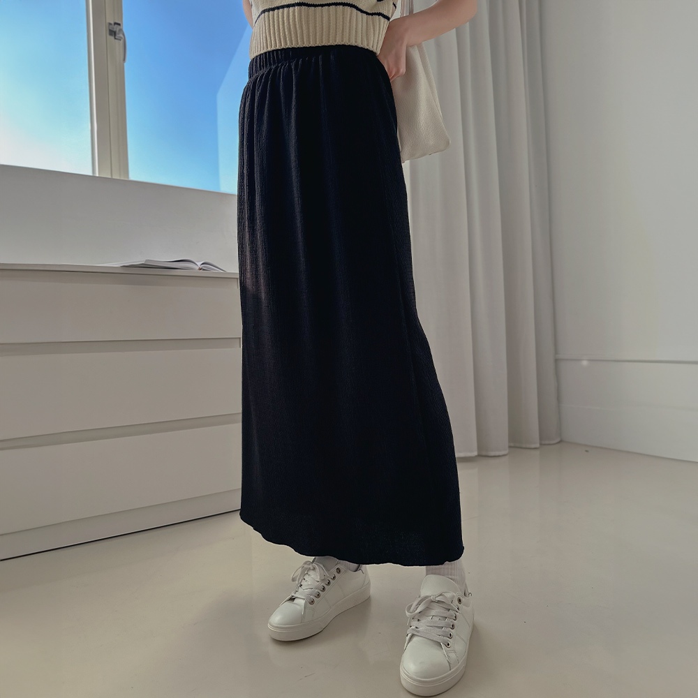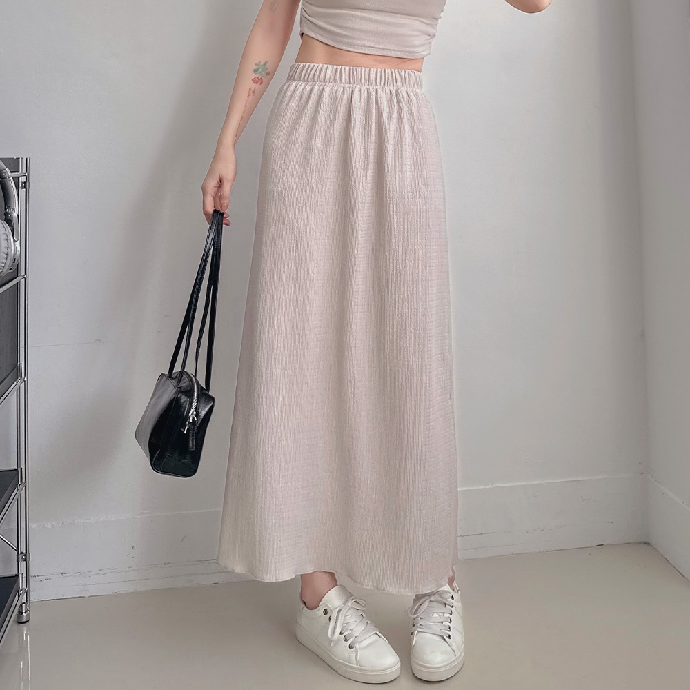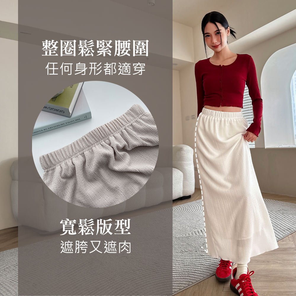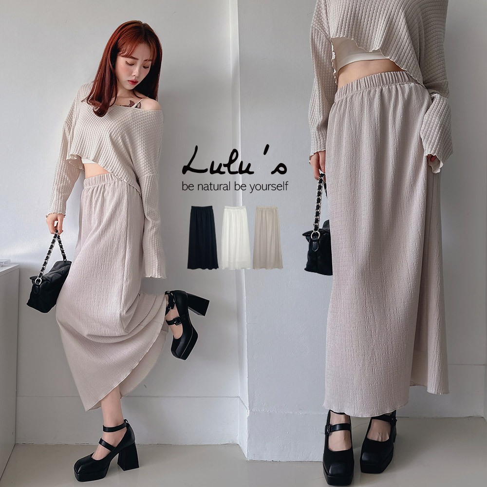 LULUS/寬鬆壓紋鬆緊帶氣質長裙3色【A05240112】裙子 顯瘦裙 250116黑|白|灰卡其LULUS