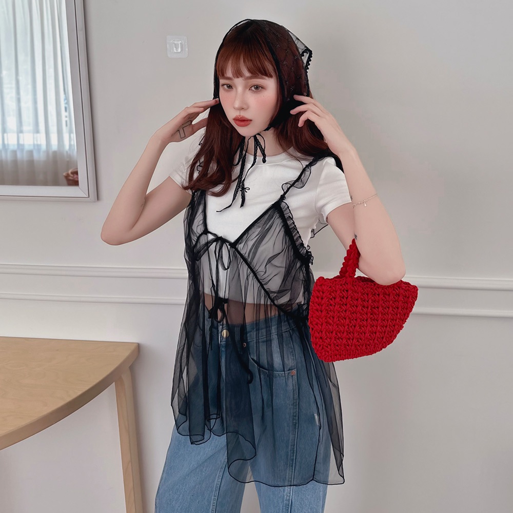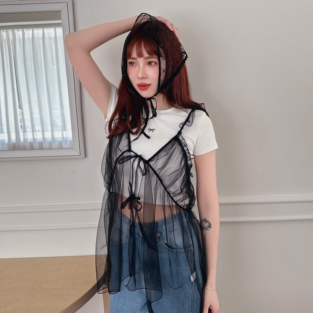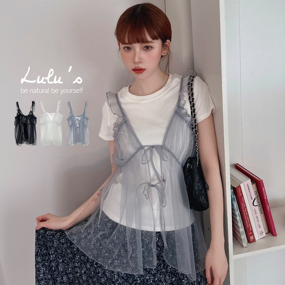 LULUS/現貨 荷葉花邊前綁帶透膚罩衫3色【A03250028】250326白|黑|藍JacketsLULUS