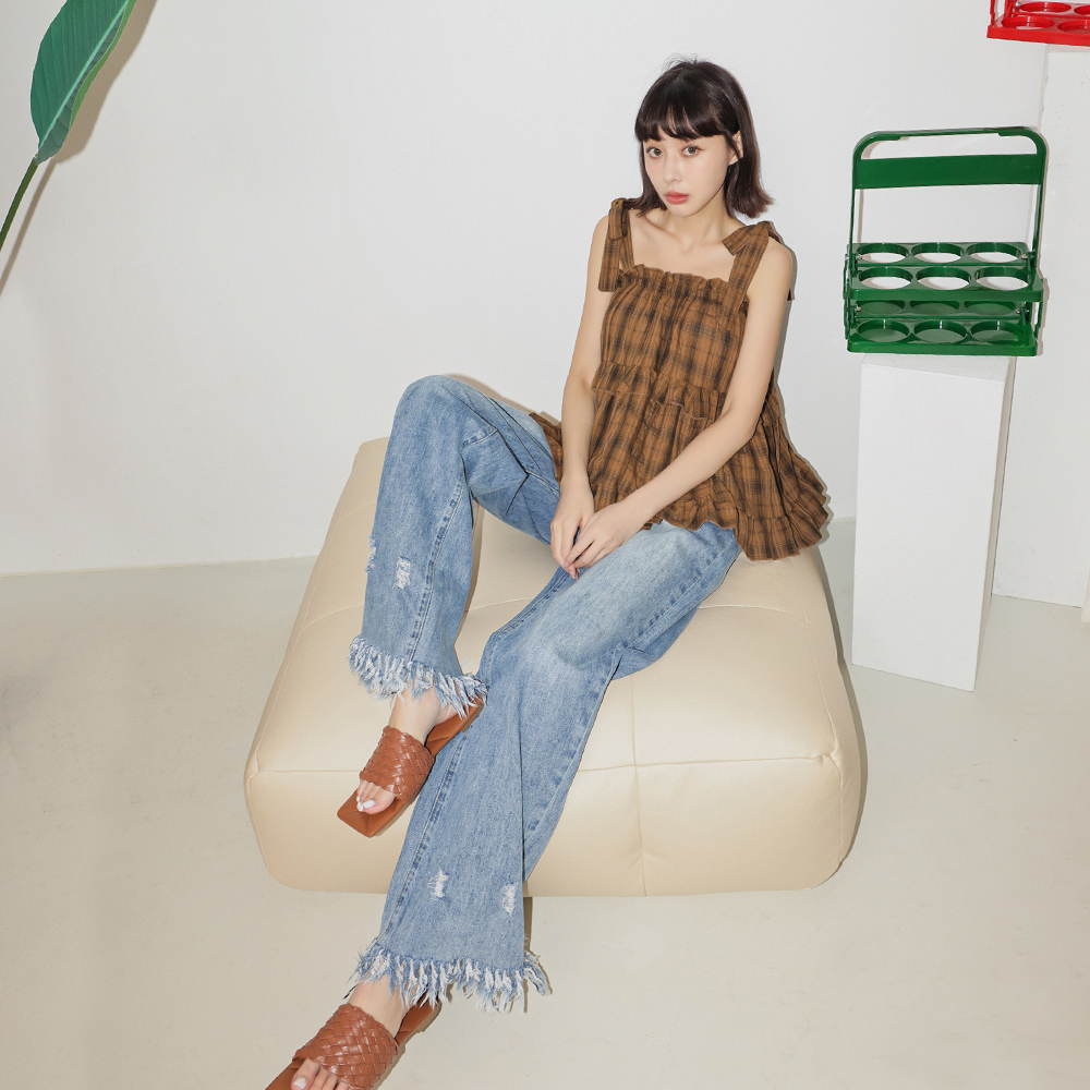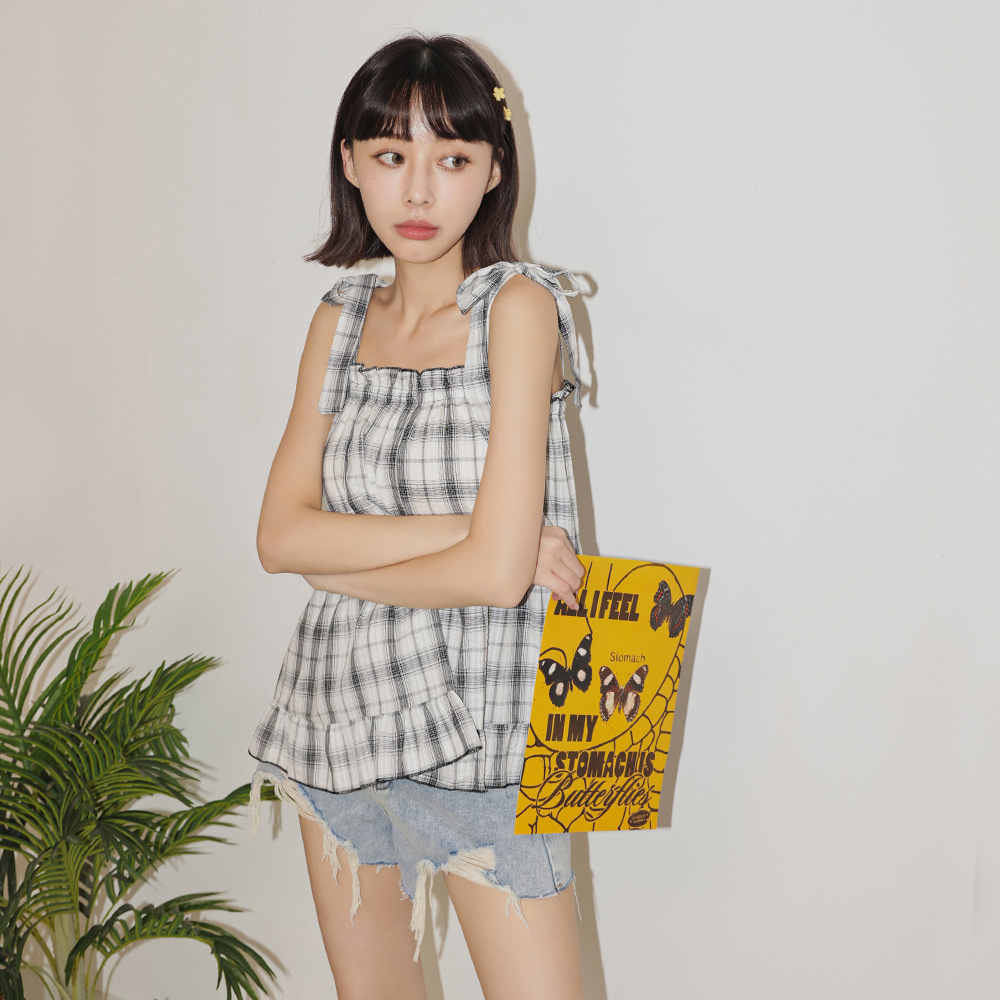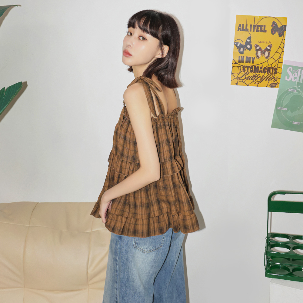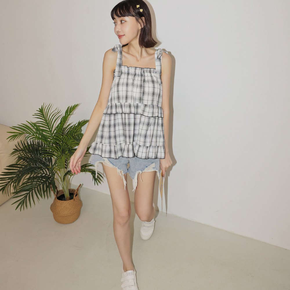 IN SHOP 綁帶荷葉格子背心-共3色【KT223168】小格白|小格咖|小格黑OthersIN’ SHOP 旗艦店