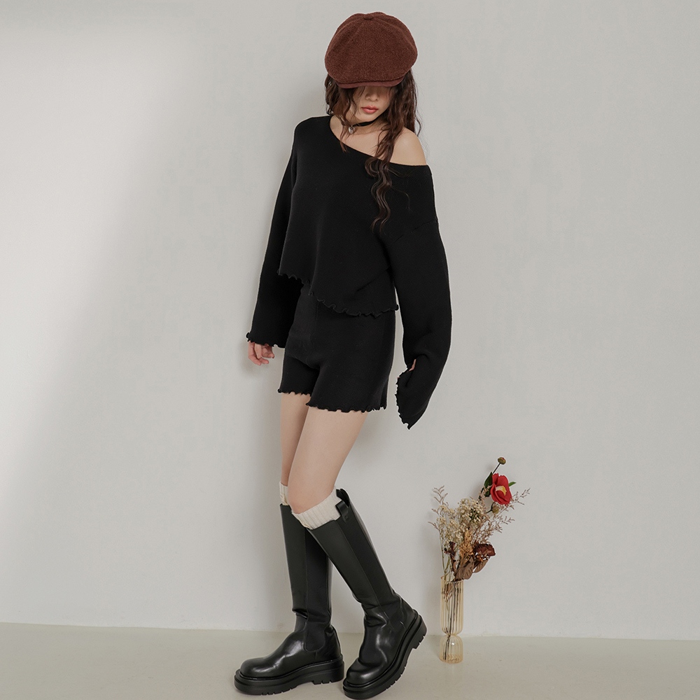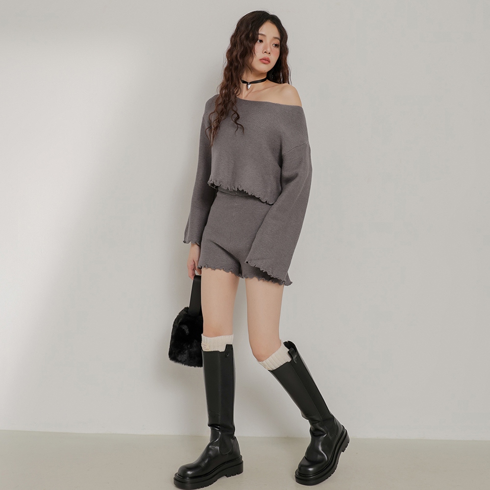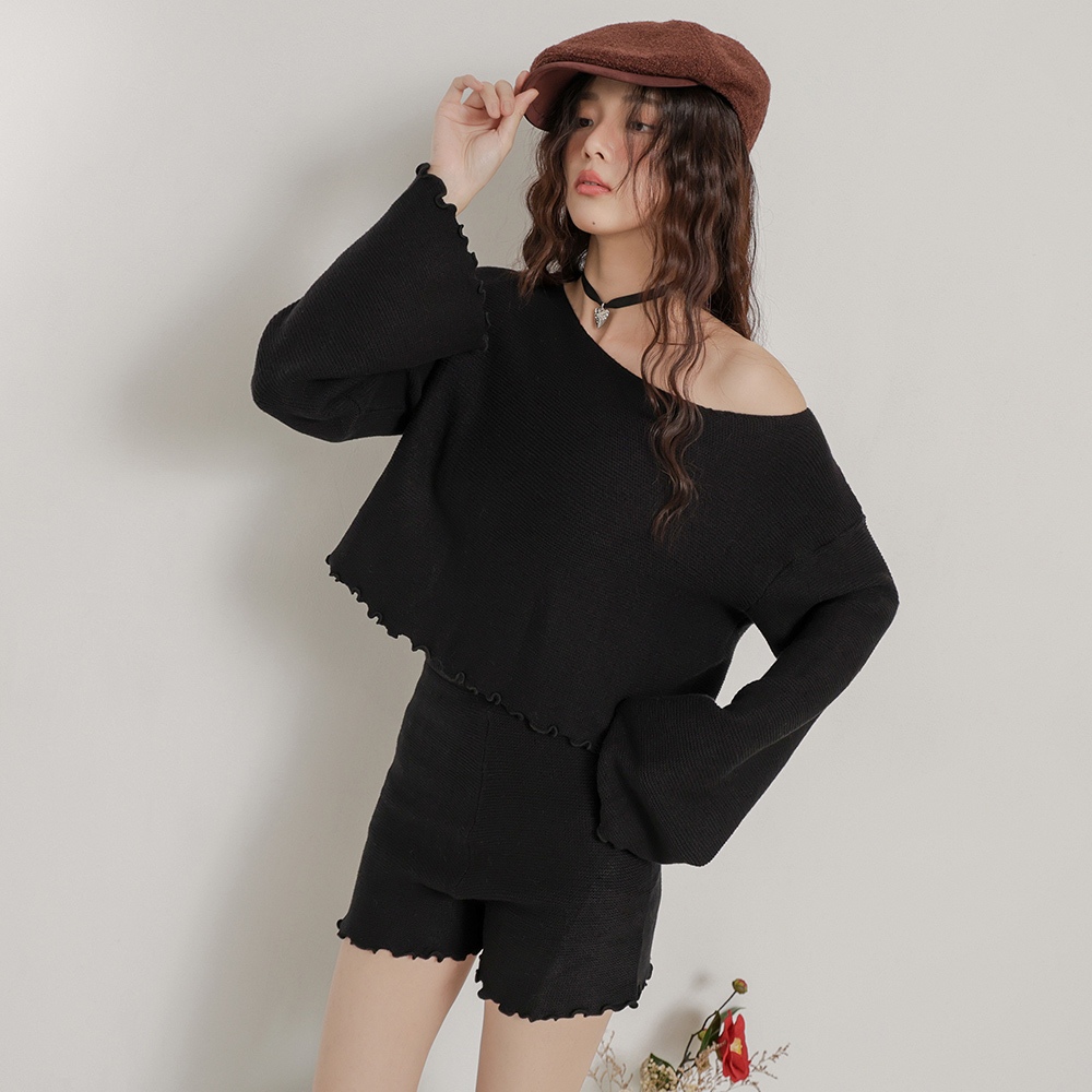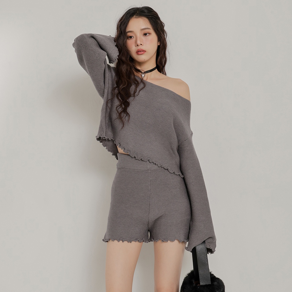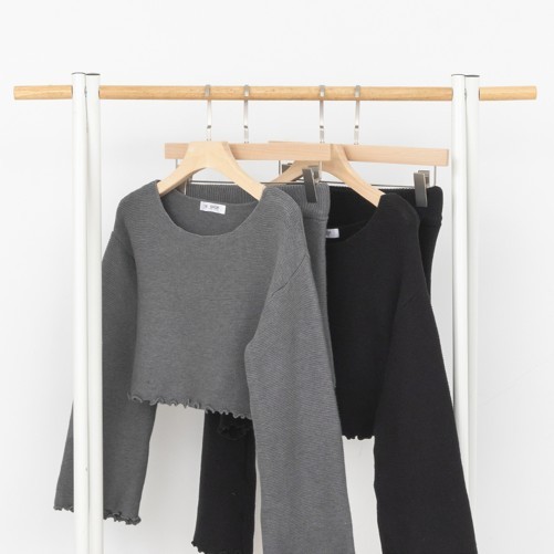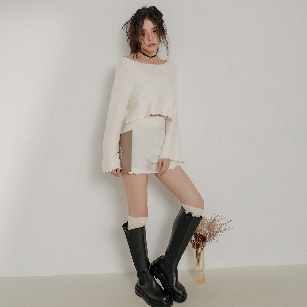 IN SHOP 木耳邊壓紋短版套裝-共4色【KT24451】白|卡|灰|黑Individual SetsIN’ SHOP 旗艦店