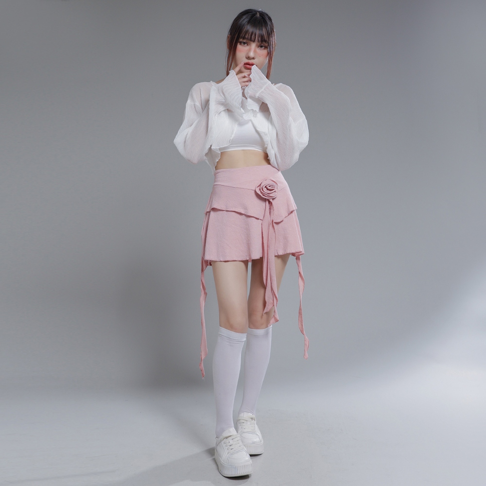 IN SHOP 甜辣花朵鬚擺短裙-共3色【KT21829】白,S|白,M|白,L|粉,S|粉,M|粉,L|黑,S|黑,M|黑,LIN’ SHOP 旗艦店