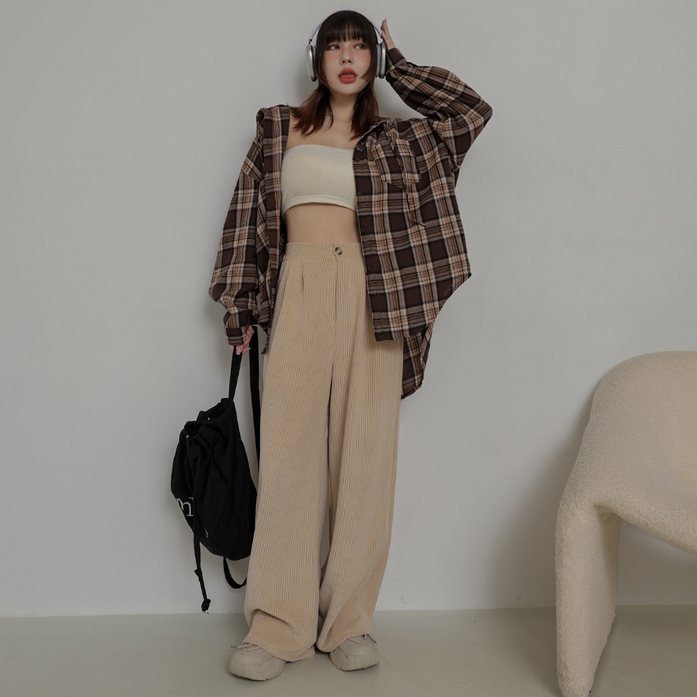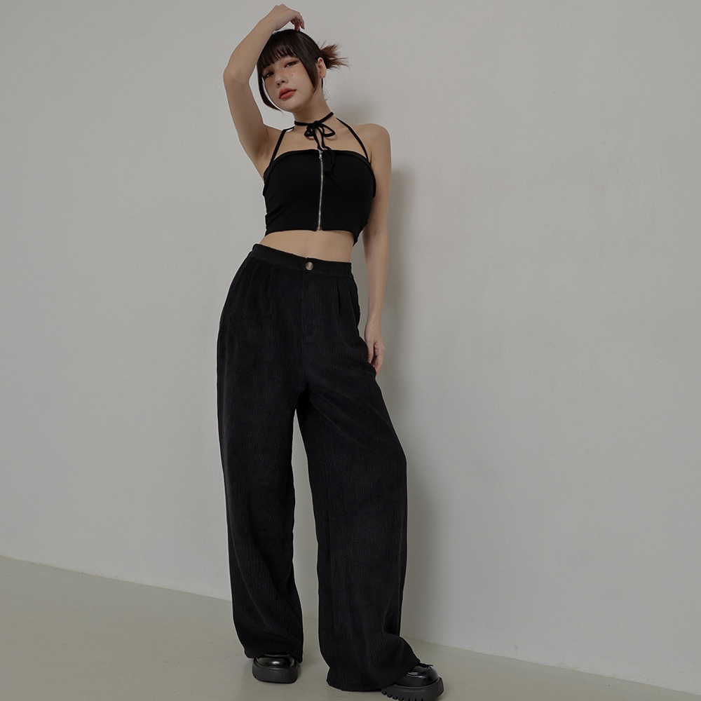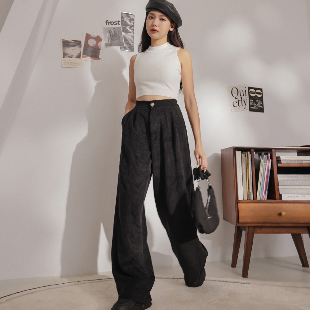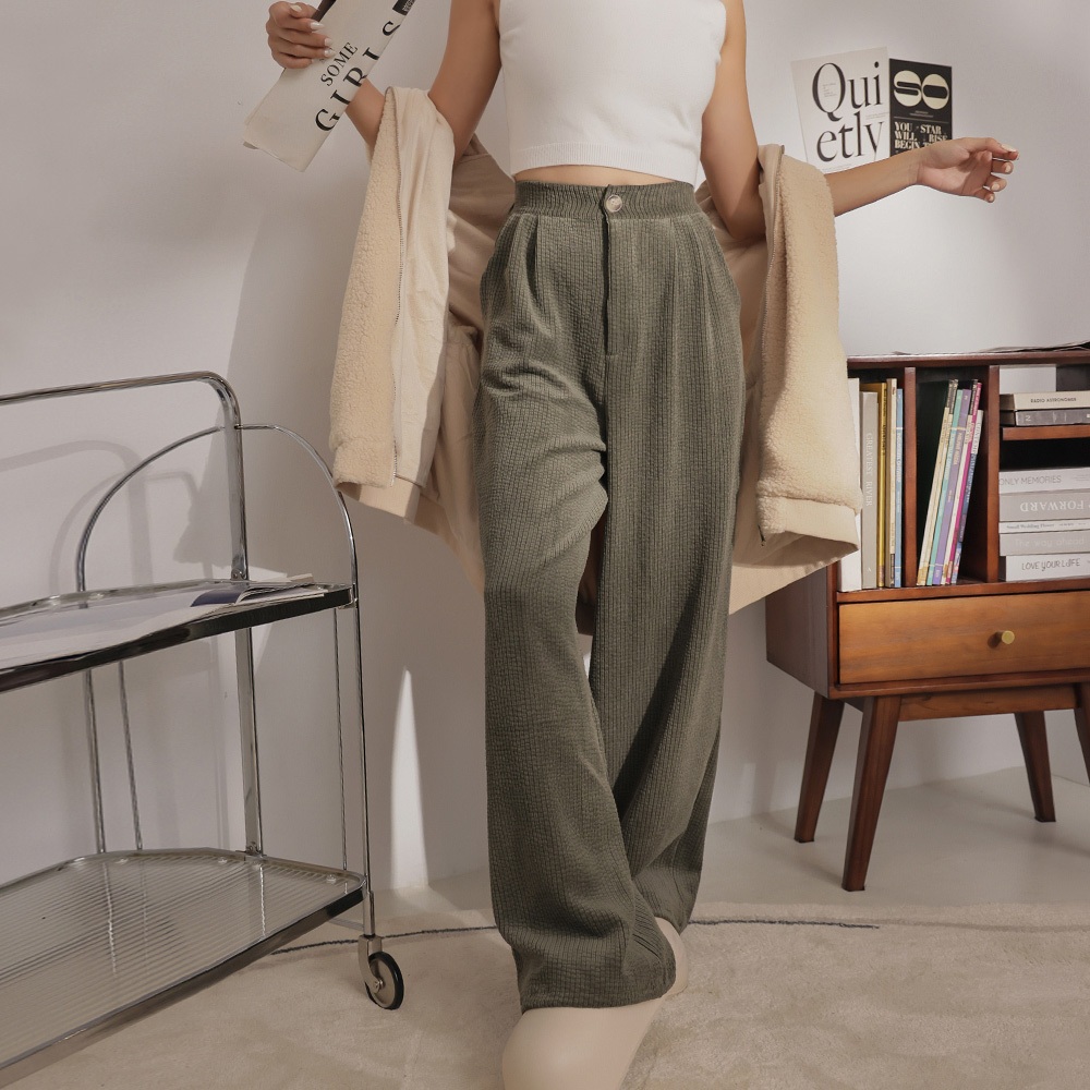 IN SHOP 燈芯絨打褶落地褲-共4色【KT201294】杏|粉|綠|黑PantsIN’ SHOP 旗艦店