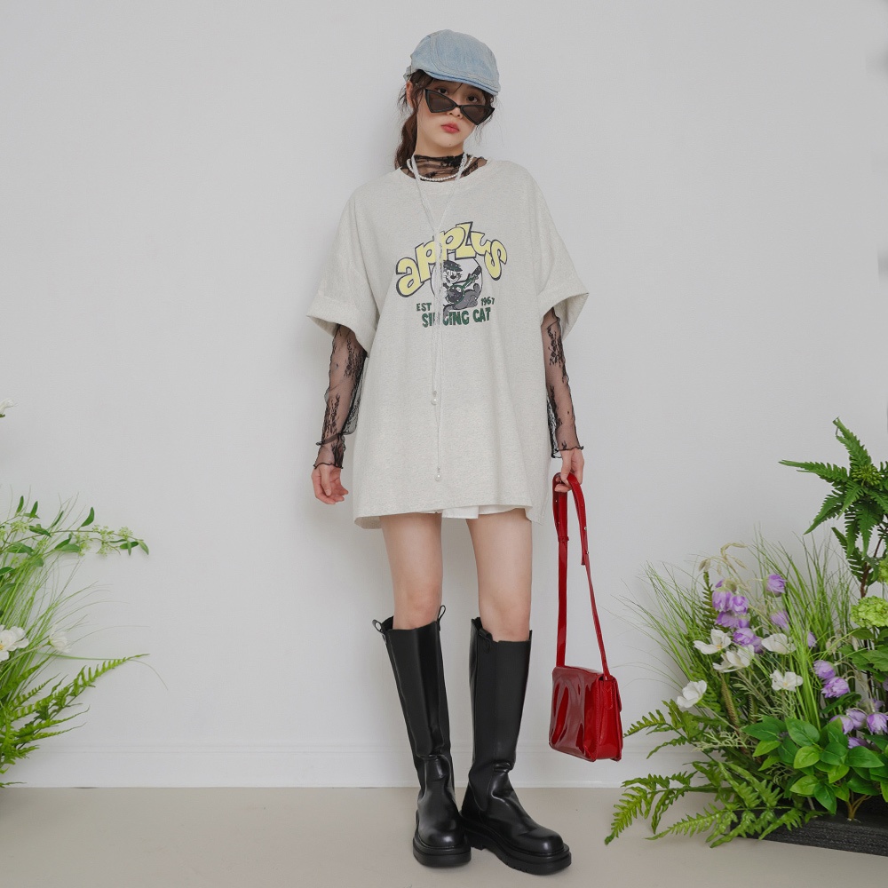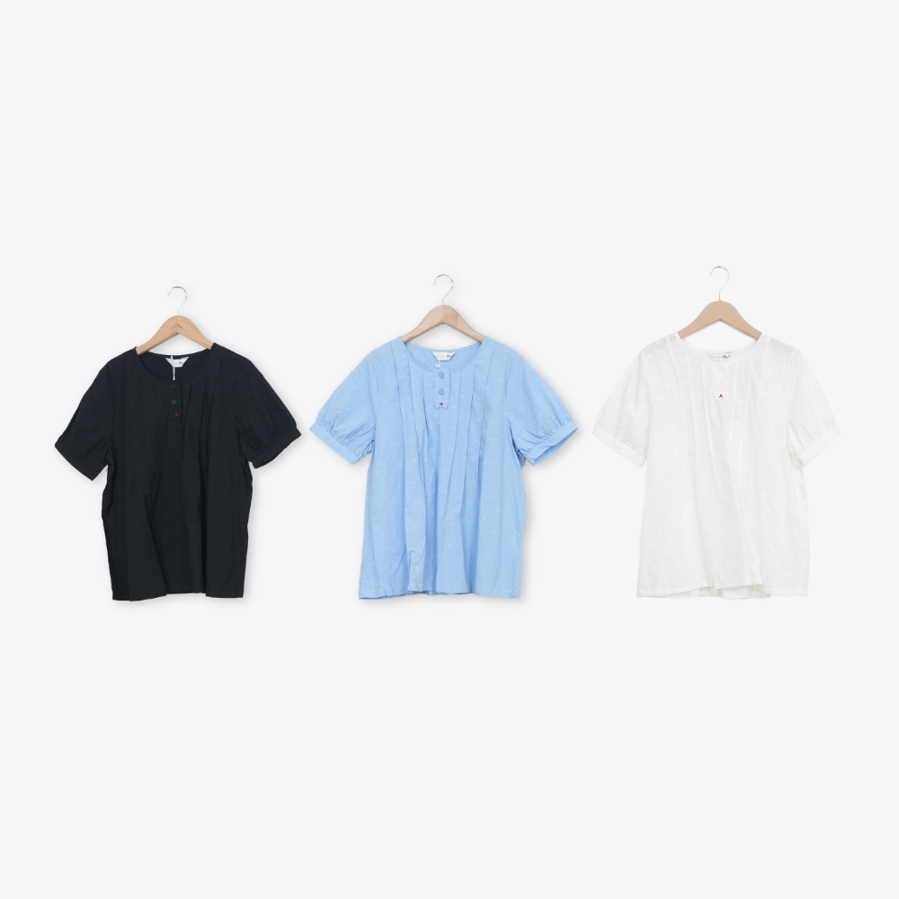 【Dailo】貓咪門襟泡泡袖短袖上衣 白 藍 黑白/F|藍/F|黑/FShirts & BlousesINLook 流行女裝品牌旗艦店