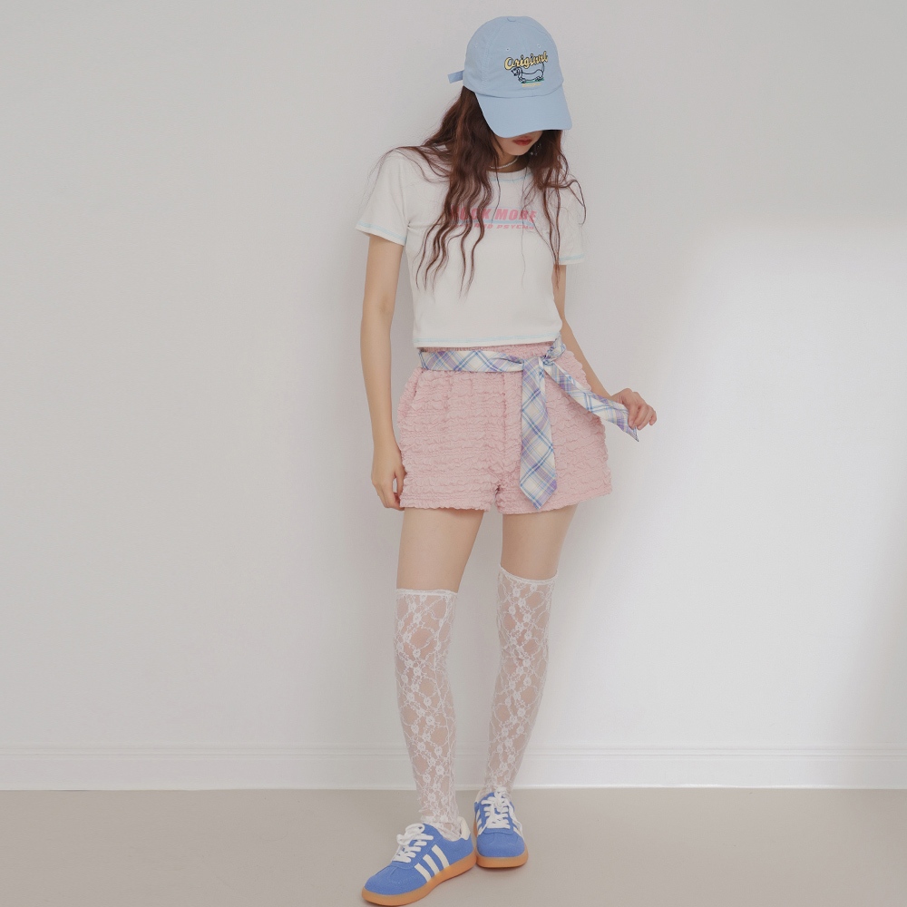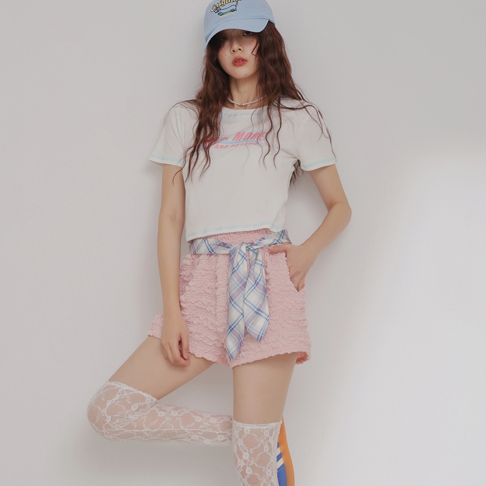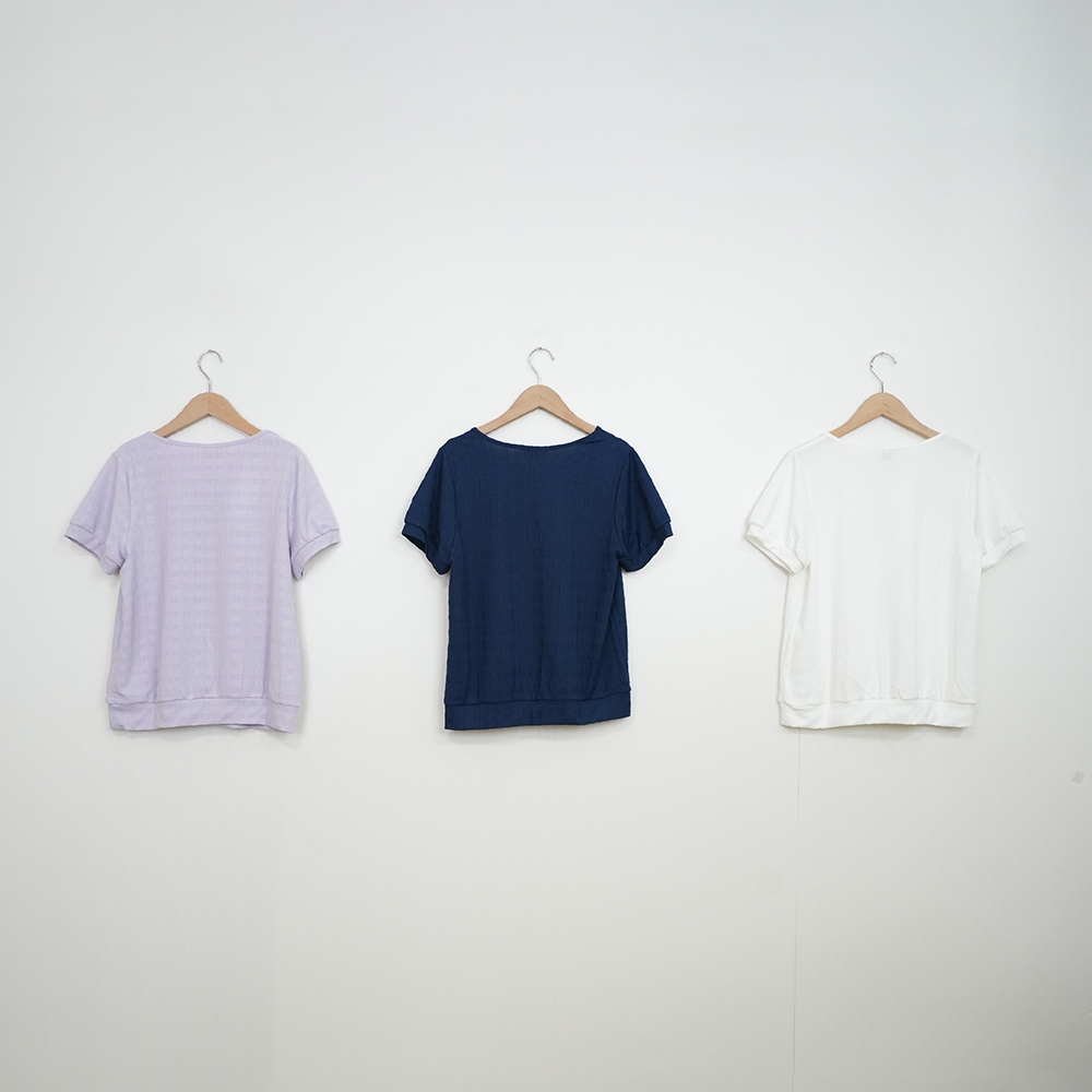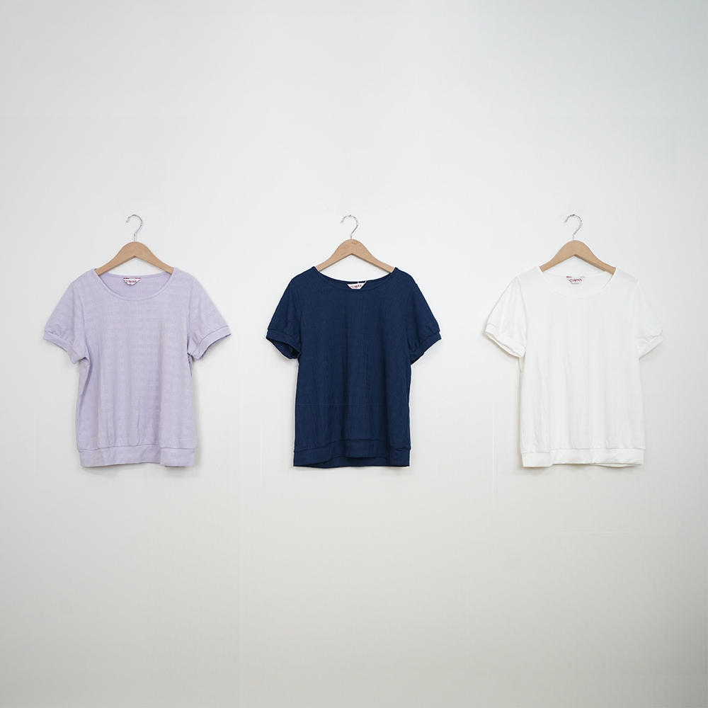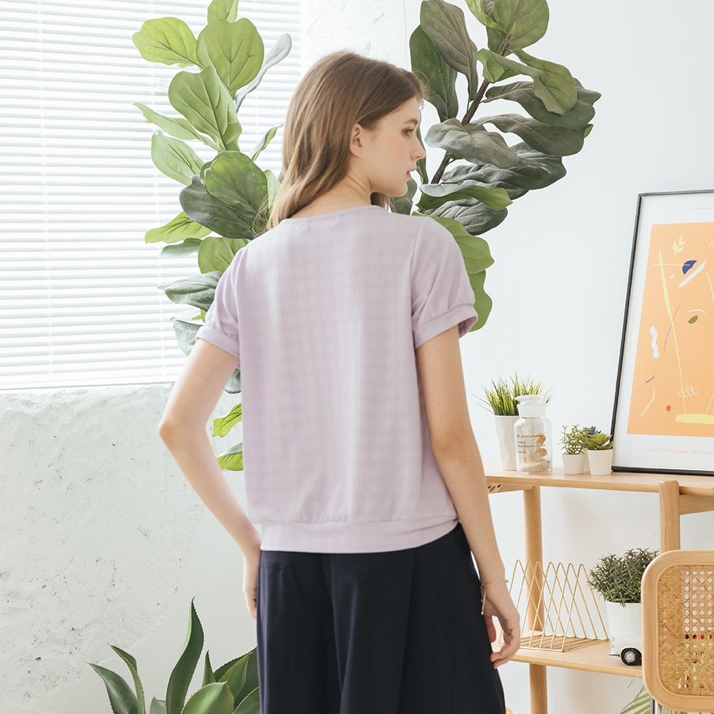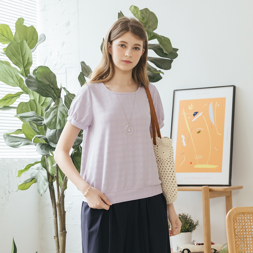 【CUMAR】圓領立體格紋短袖上衣 藍 白 紫 (魅力商品)藍/F|白/F|紫/FT-shirtsINLook 流行女裝品牌旗艦店