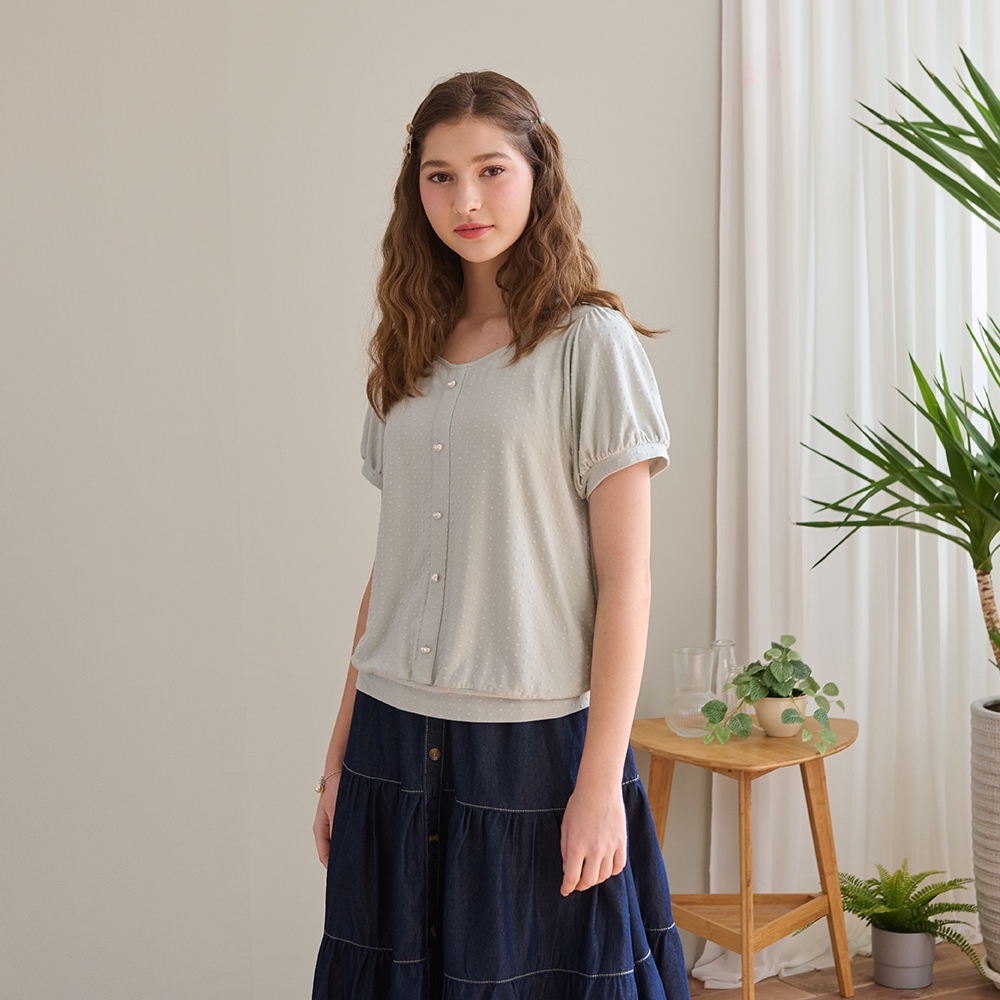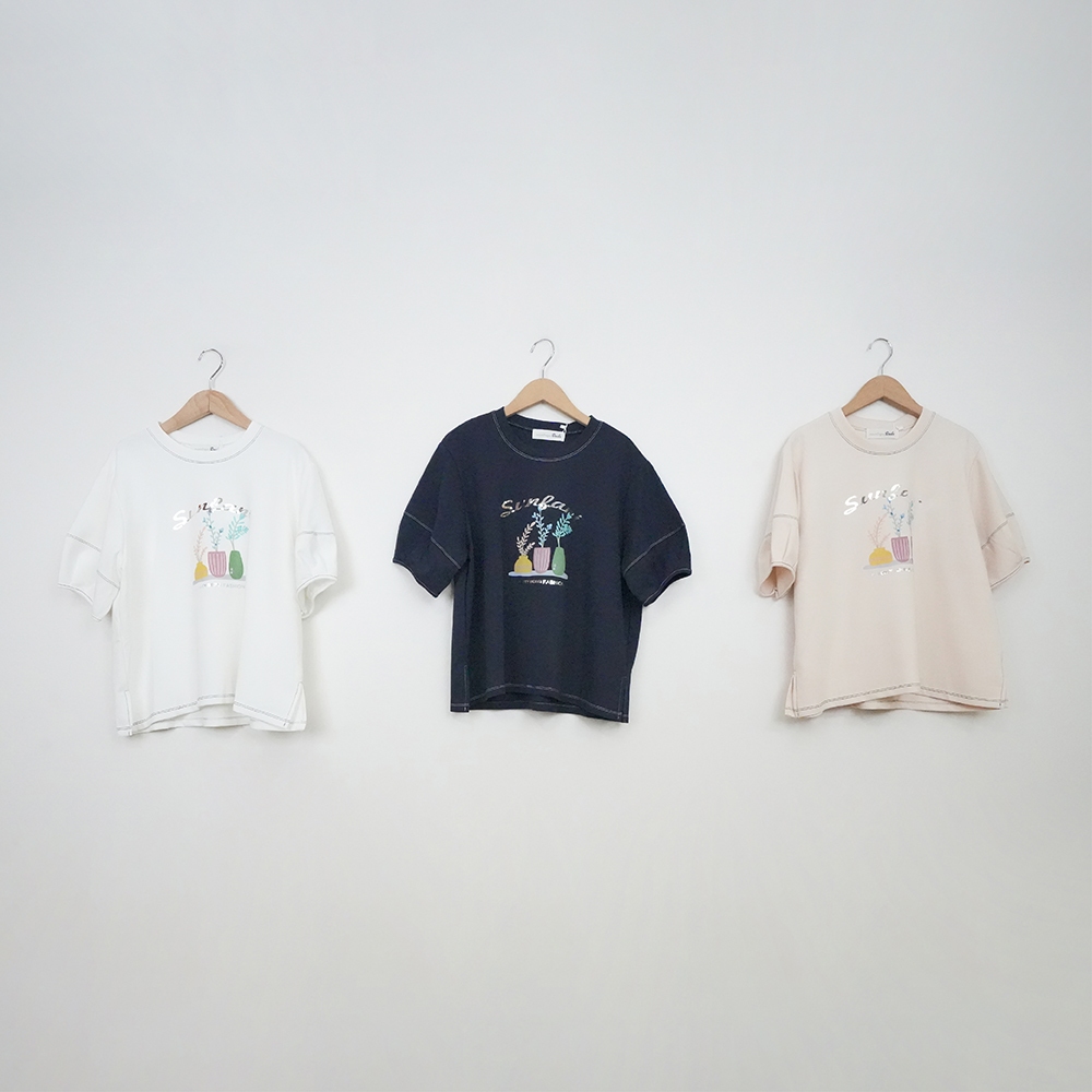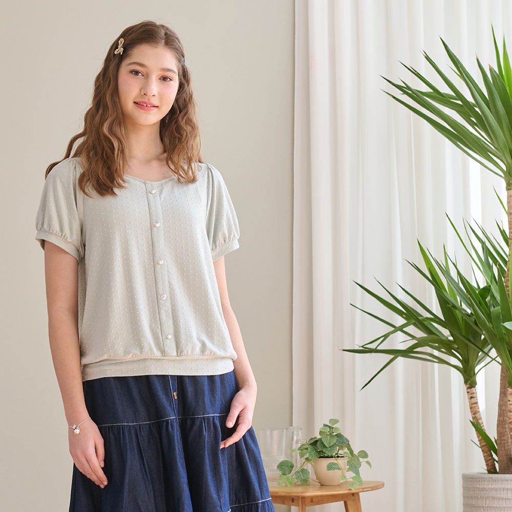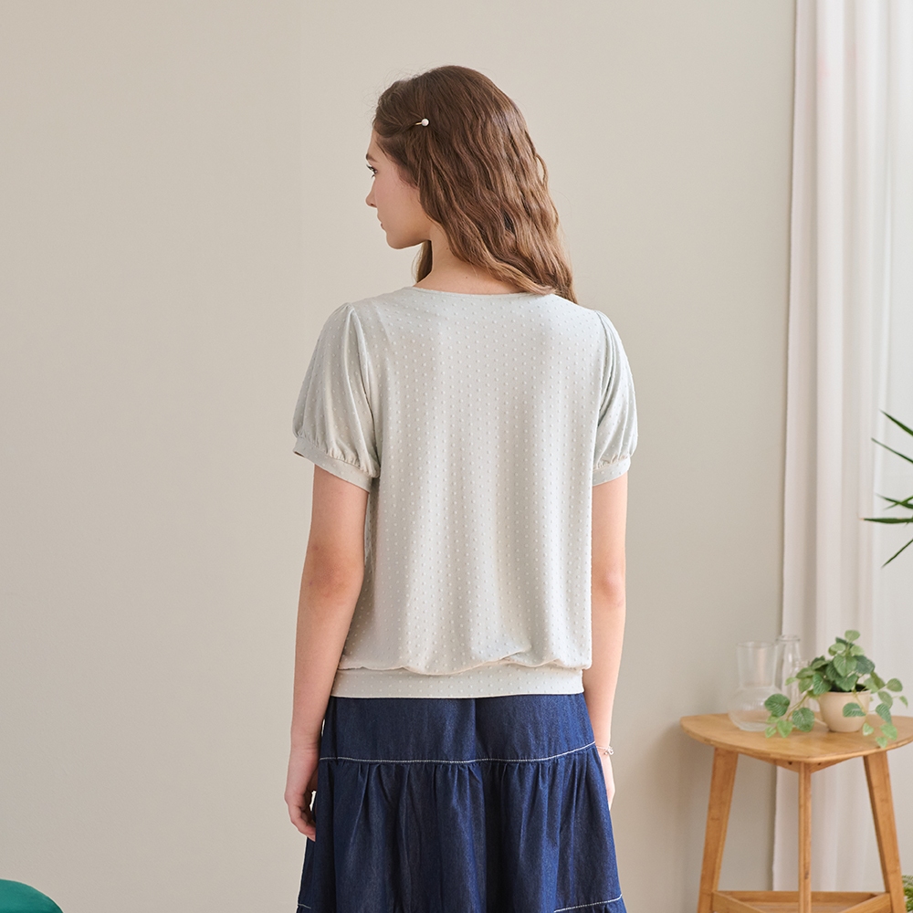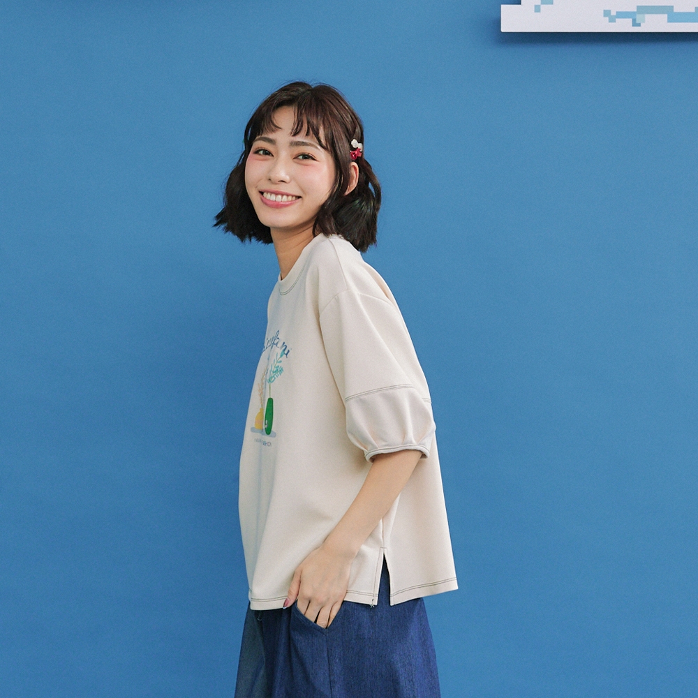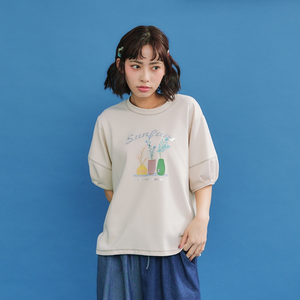 【Dailo】小清新花束配色爬線繭型袖短袖上衣 藍 白 杏藍/F|白/F|杏/FT-shirtsINLook 流行女裝品牌旗艦店
