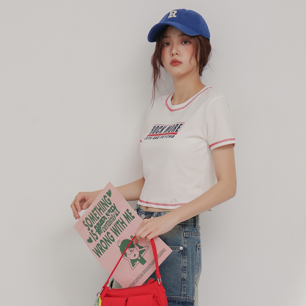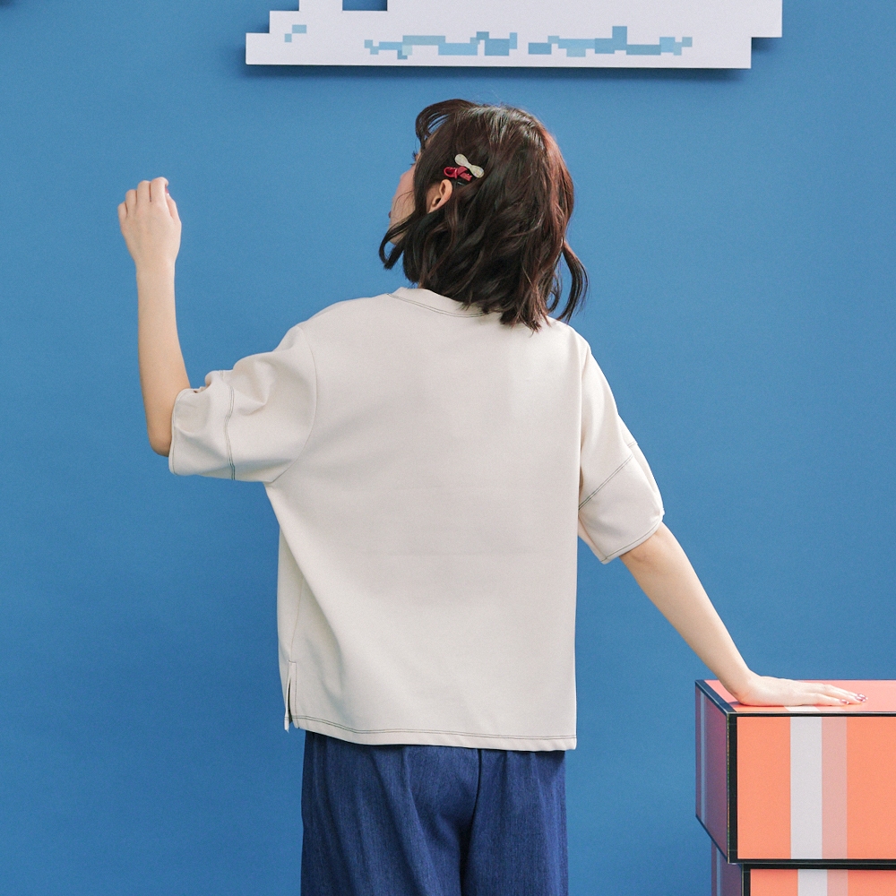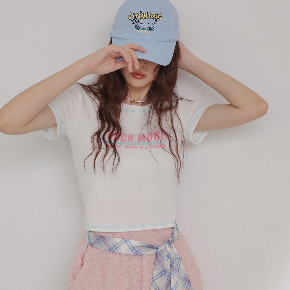 IN SHOP 撞色車線英文T-共2色【KT224510】白粉|白藍T-shirtsIN’ SHOP 旗艦店