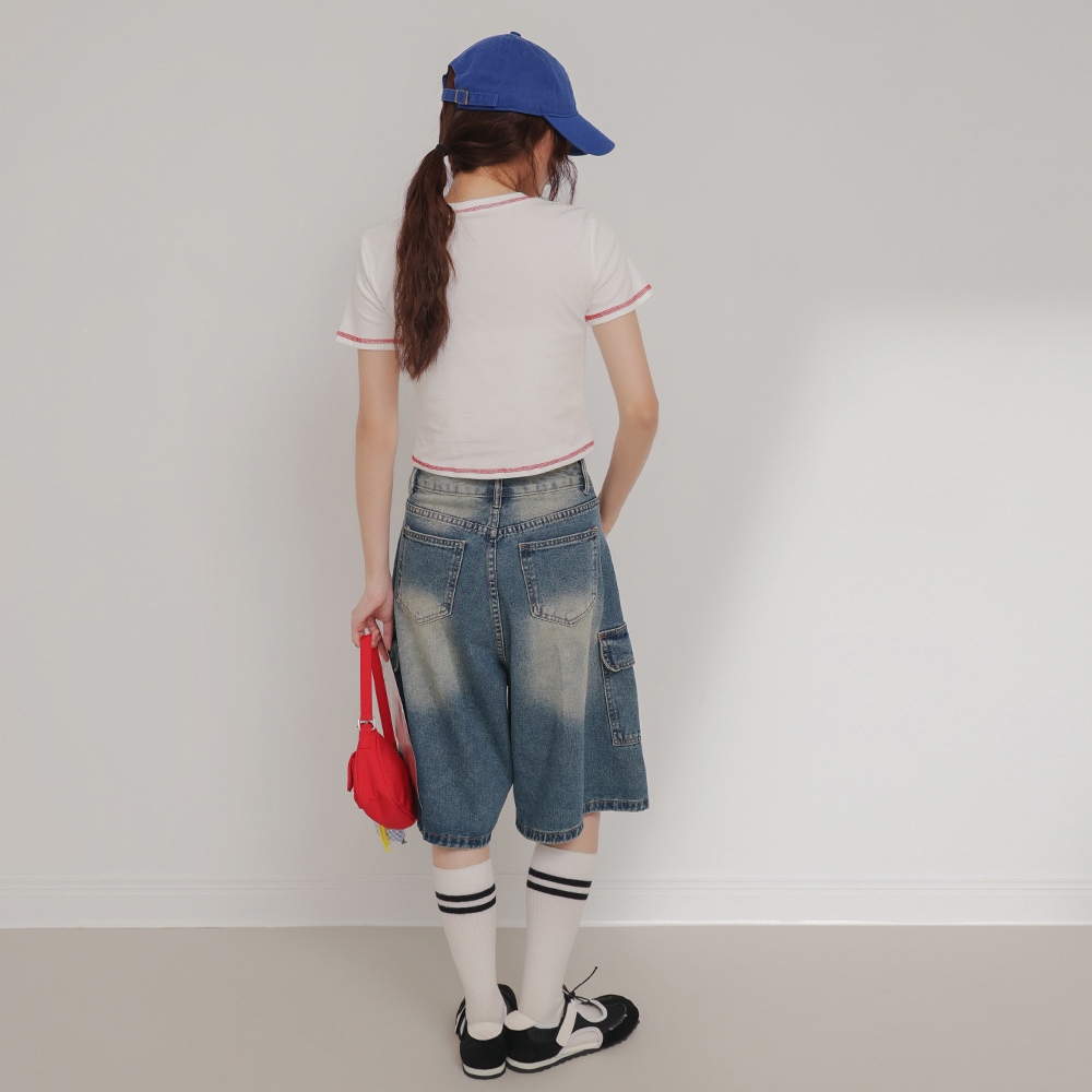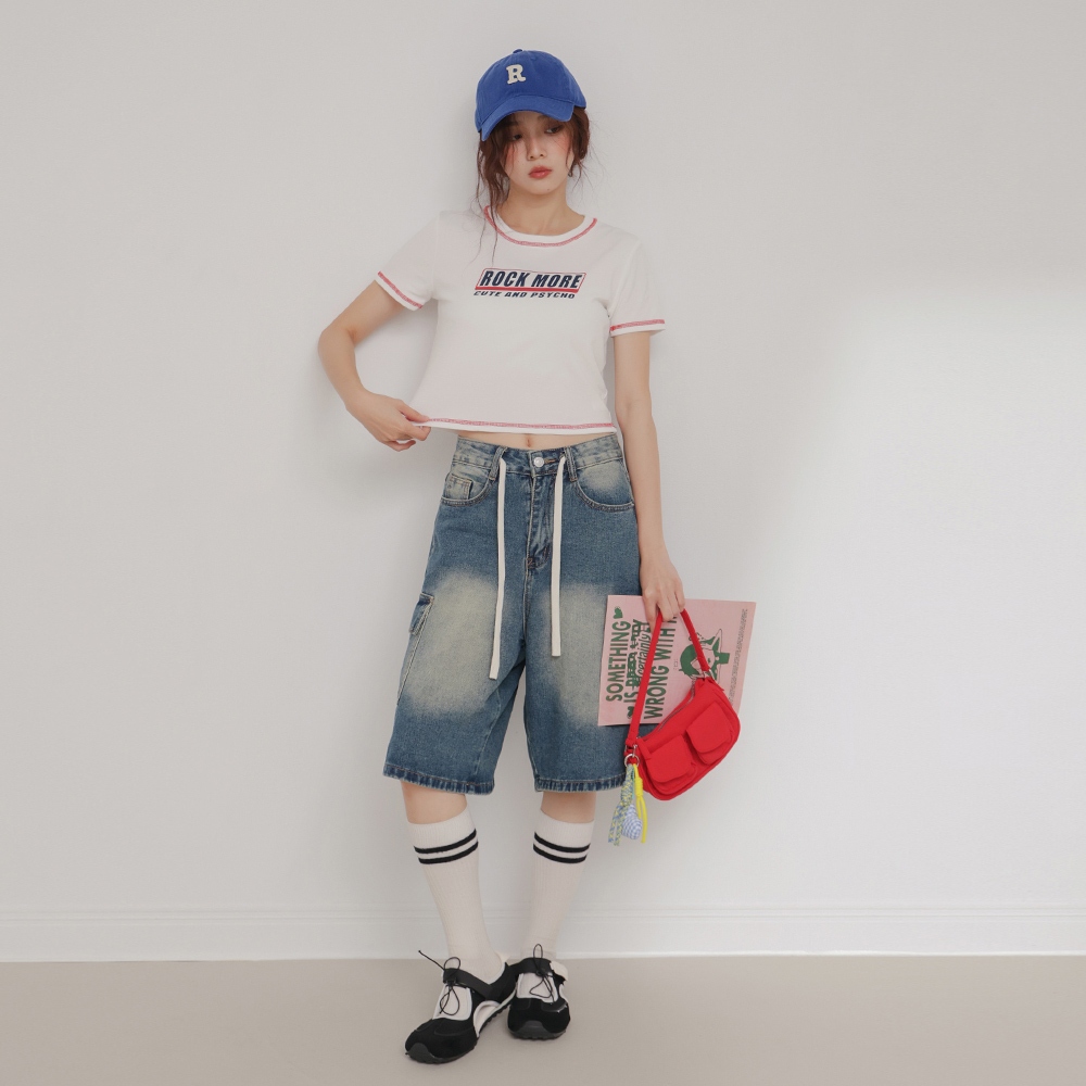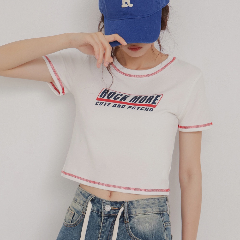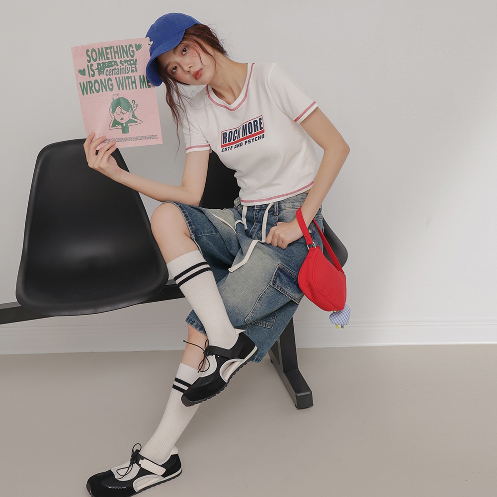 IN SHOP 撞色車線英文T-共2色【KT224510】白粉|白藍T-shirtsIN’ SHOP 旗艦店