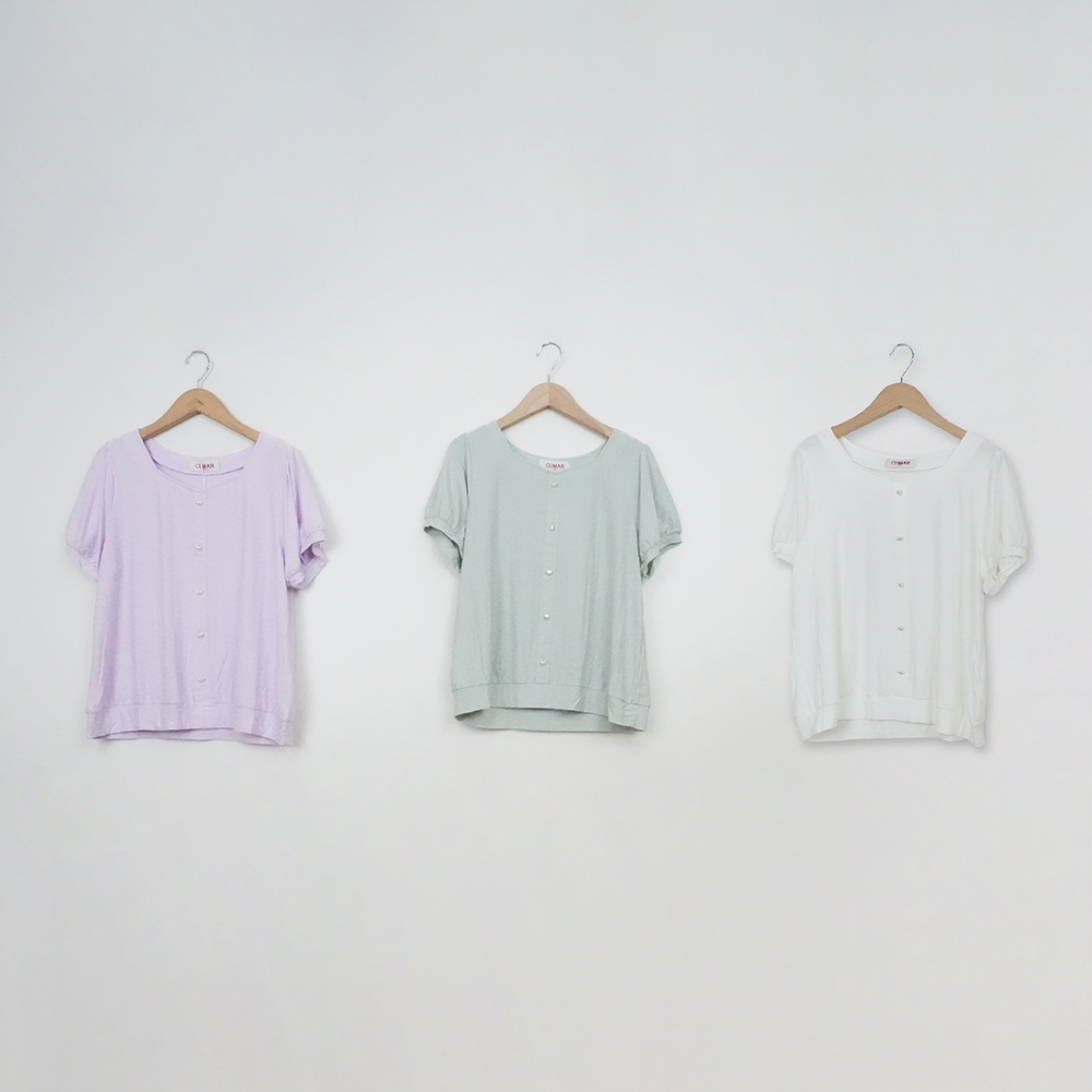 【CUMAR】桃心領假門襟愛心釦短袖上衣 白 綠 紫 (魅力商品)白/F|綠/F|紫/FT-shirtsINLook 流行女裝品牌旗艦店