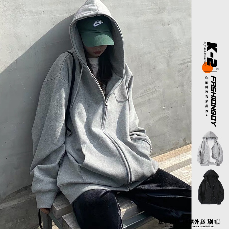 【K-2】內刷毛 連帽外套 秋冬 刷毛 休閒外套 棉外套 情侶 外套 刷毛外套 素面 情侶 寬鬆落肩 K【Y00001】灰色,M|黑色,L|灰色,L|黑色,MOthersK-2 Fashionboy