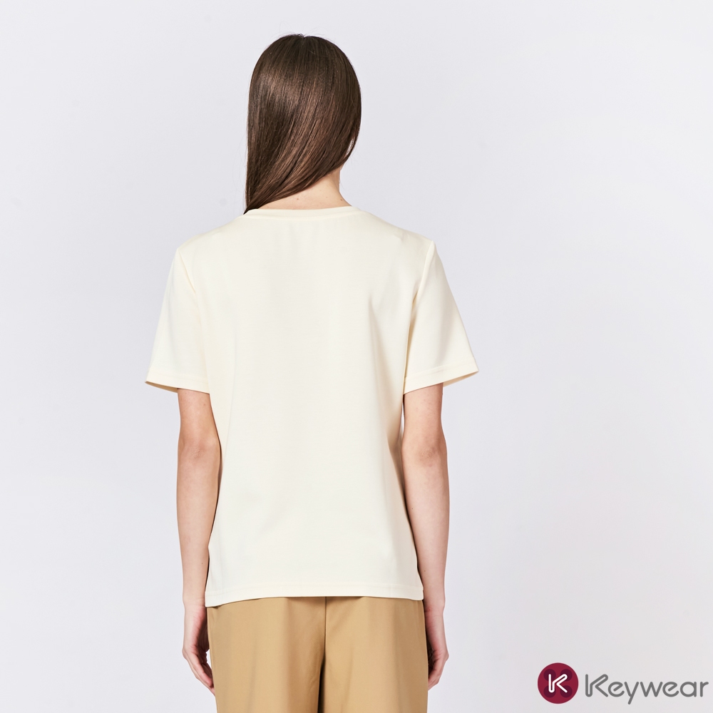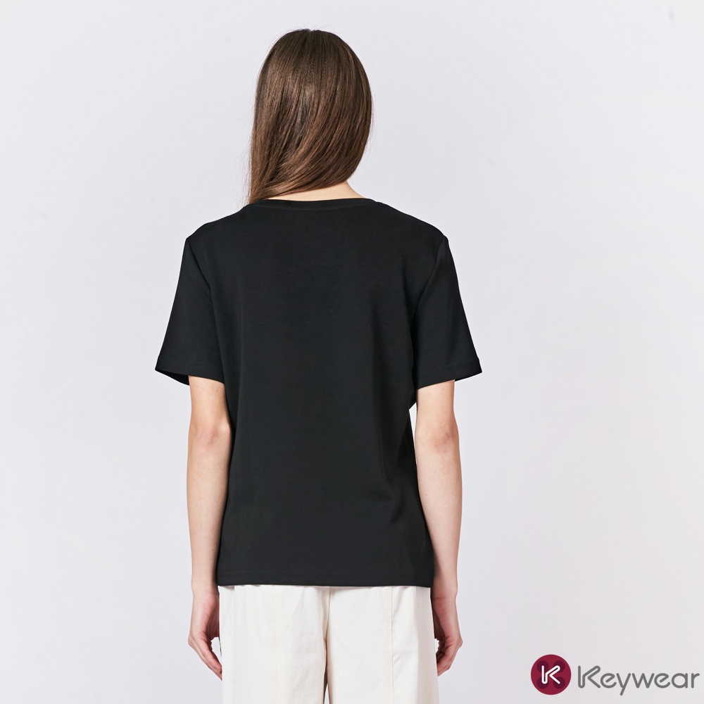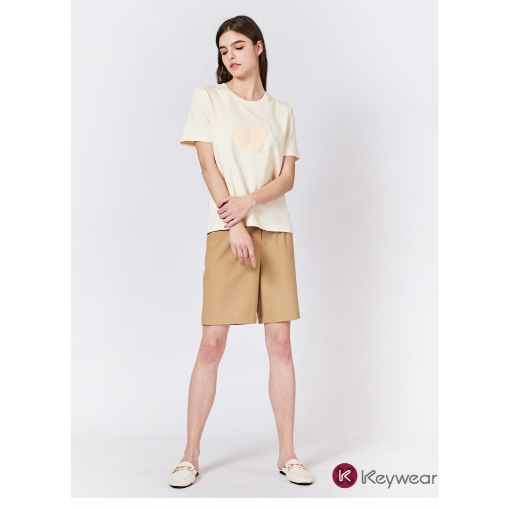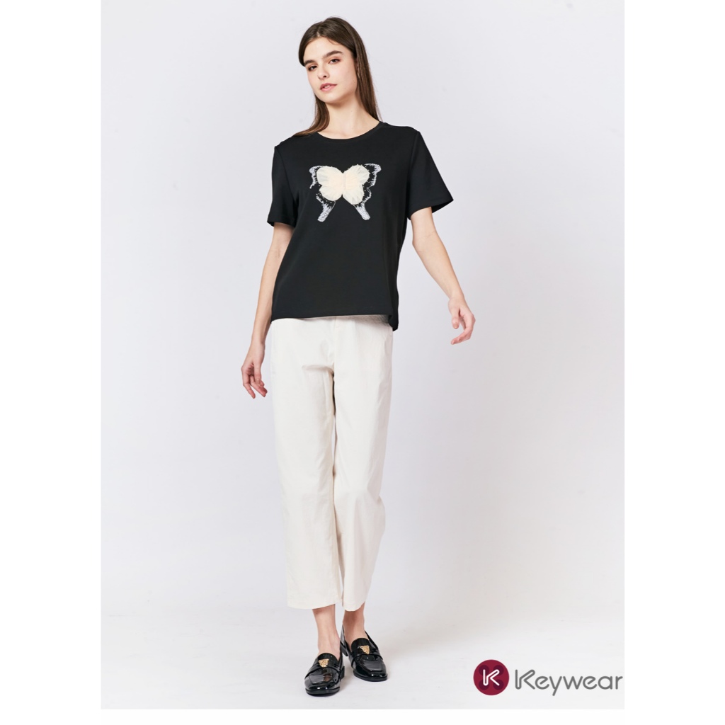 【KeyWear 奇威名品】立體蕾絲蝴蝶造型親膚舒適莫代爾百搭短袖上衣T恤 共2色黑,M|黑,L|黑,XL|米,M|米,L|米,XLT-shirtsKeywear奇威官方旗艦店