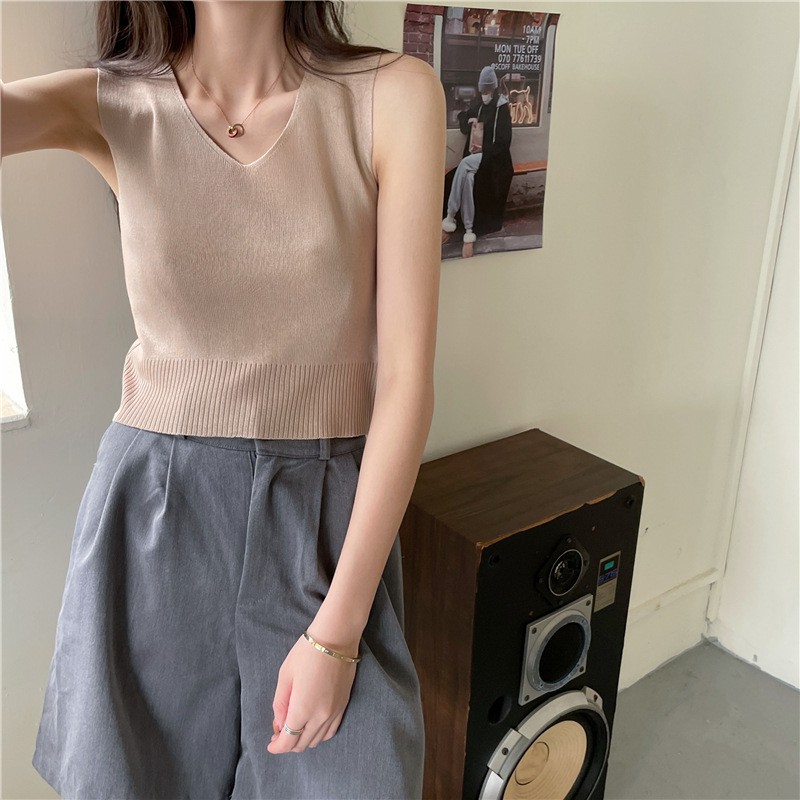 針織背心 短版上衣 小可愛 無袖內搭針織吊帶背心022153黑|白|卡其Tanks & CamisolesLeenaSui ~台灣賣家 隔日到貨
