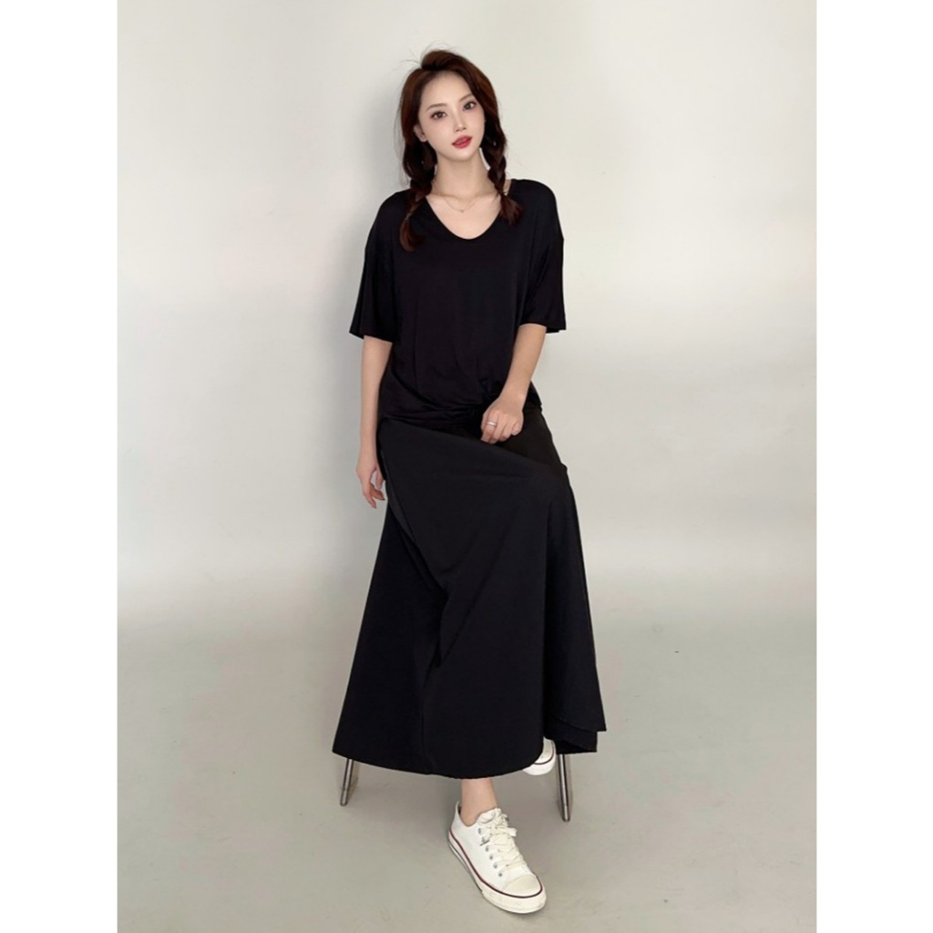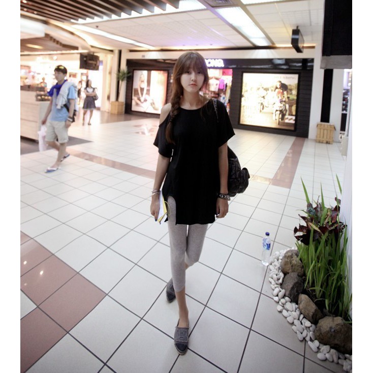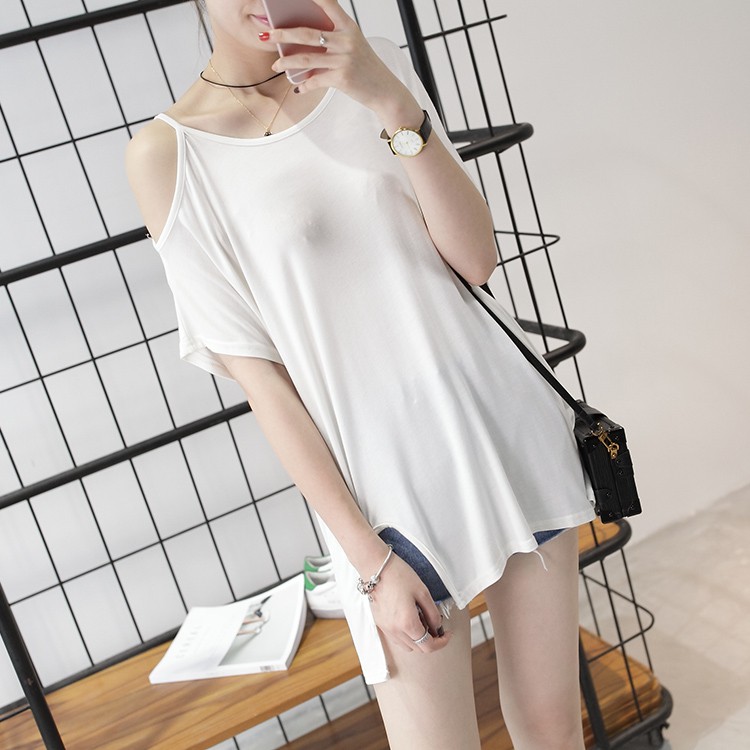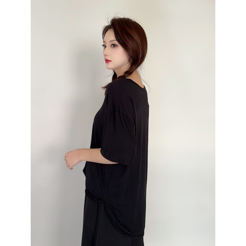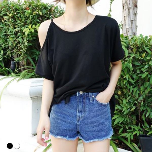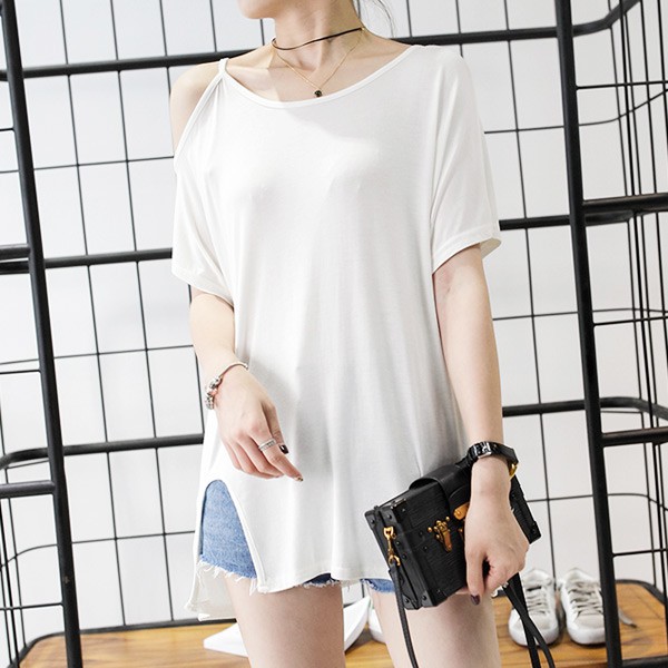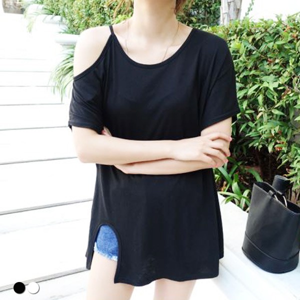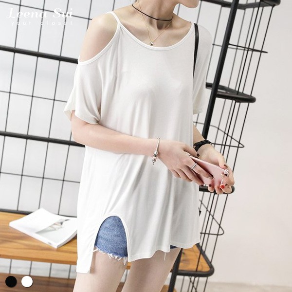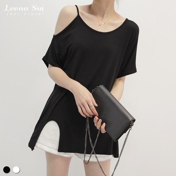 短袖T 短袖上衣 寬鬆開衩露肩短袖上衣 022063黑|白T-shirtsLeenaSui ~台灣賣家 隔日到貨