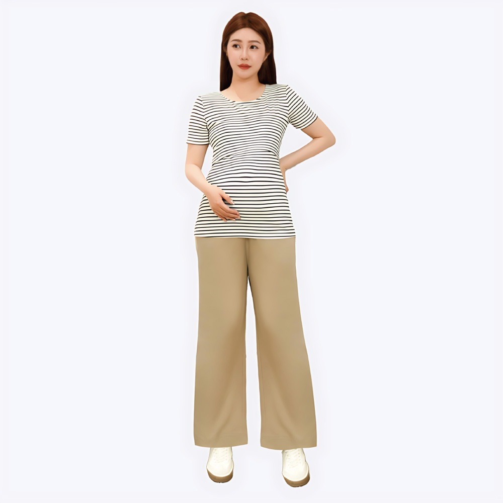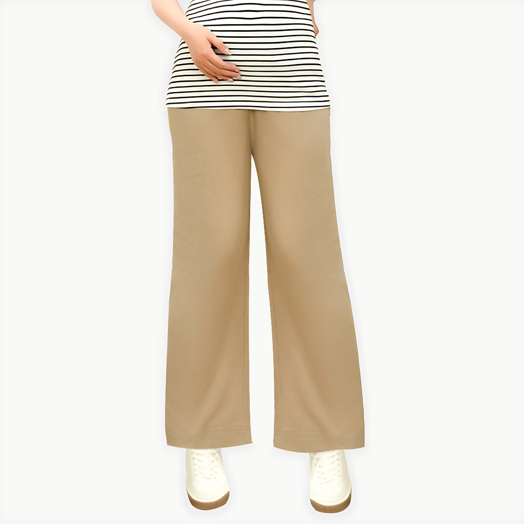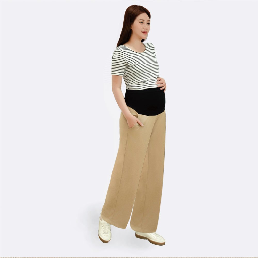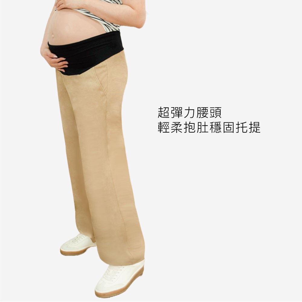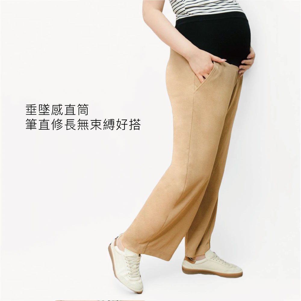【Gennies 奇妮】垂墬直筒孕婦長褲-卡其/黑二色(T4Q09)不易皺 修飾臀部 彈力腰頭 俐落有型 上班褲卡其,M|卡其,L|黑,M|黑,LMaternity BottomsGennies 奇妮孕哺(官方旗艦店)