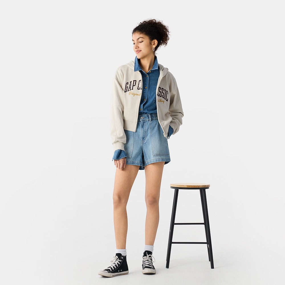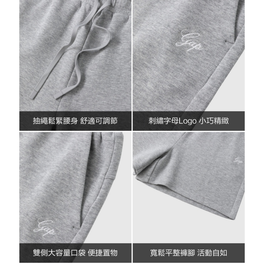 Gap 女裝 Logo刺繡抽繩鬆緊短褲-淺灰色(765575)XS|S|M|L|XLShortsGap官方旗艦店