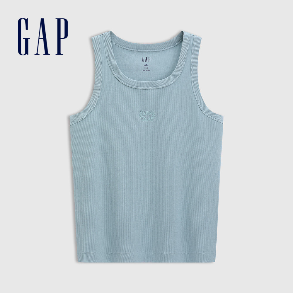 Gap 女裝 Logo刺繡圓領針織背心 女友T系列-淺藍色(766138)S|M|L|XL|XSVestsGap官方旗艦店