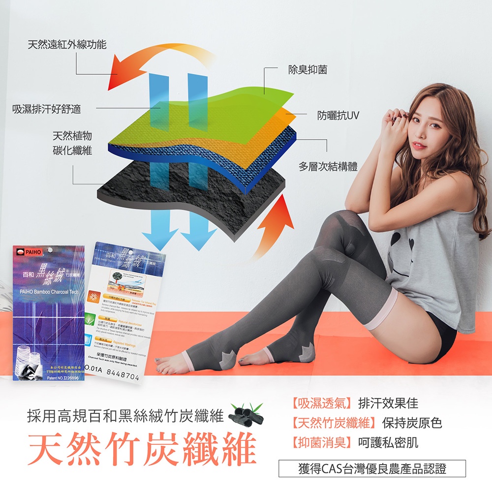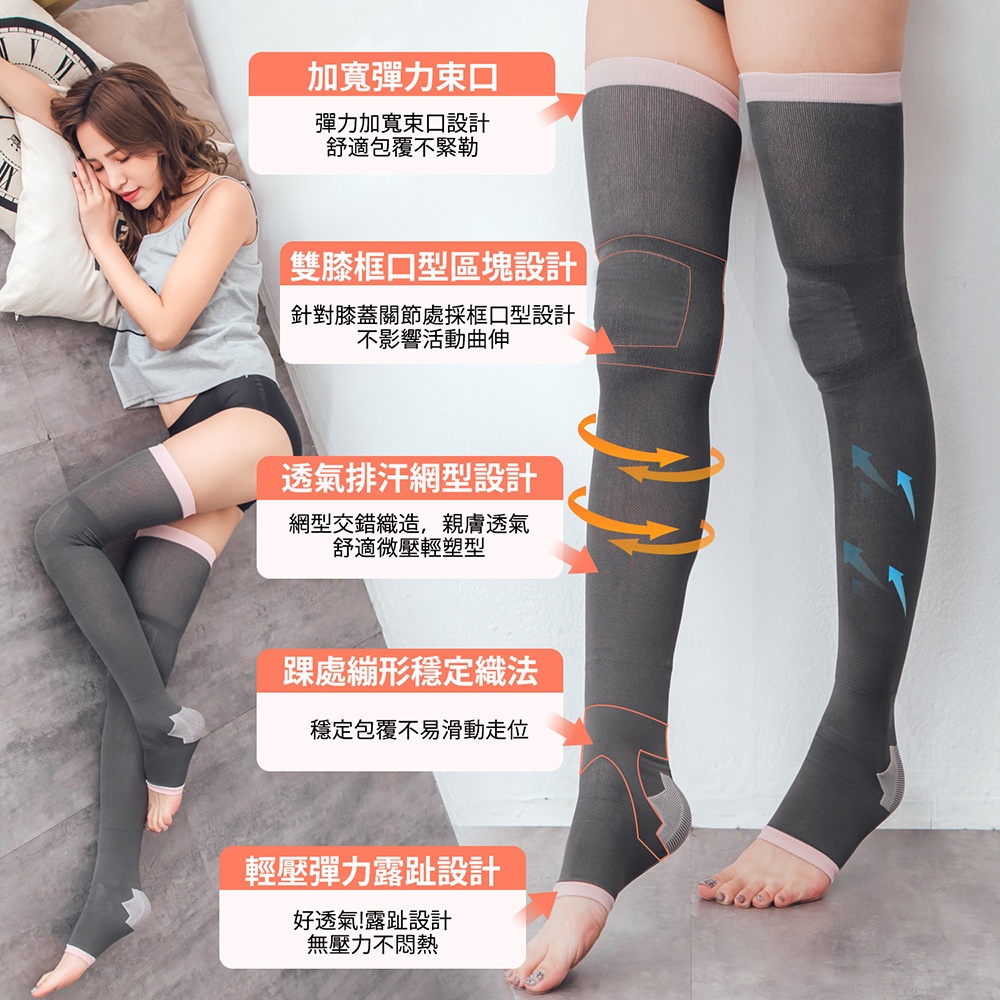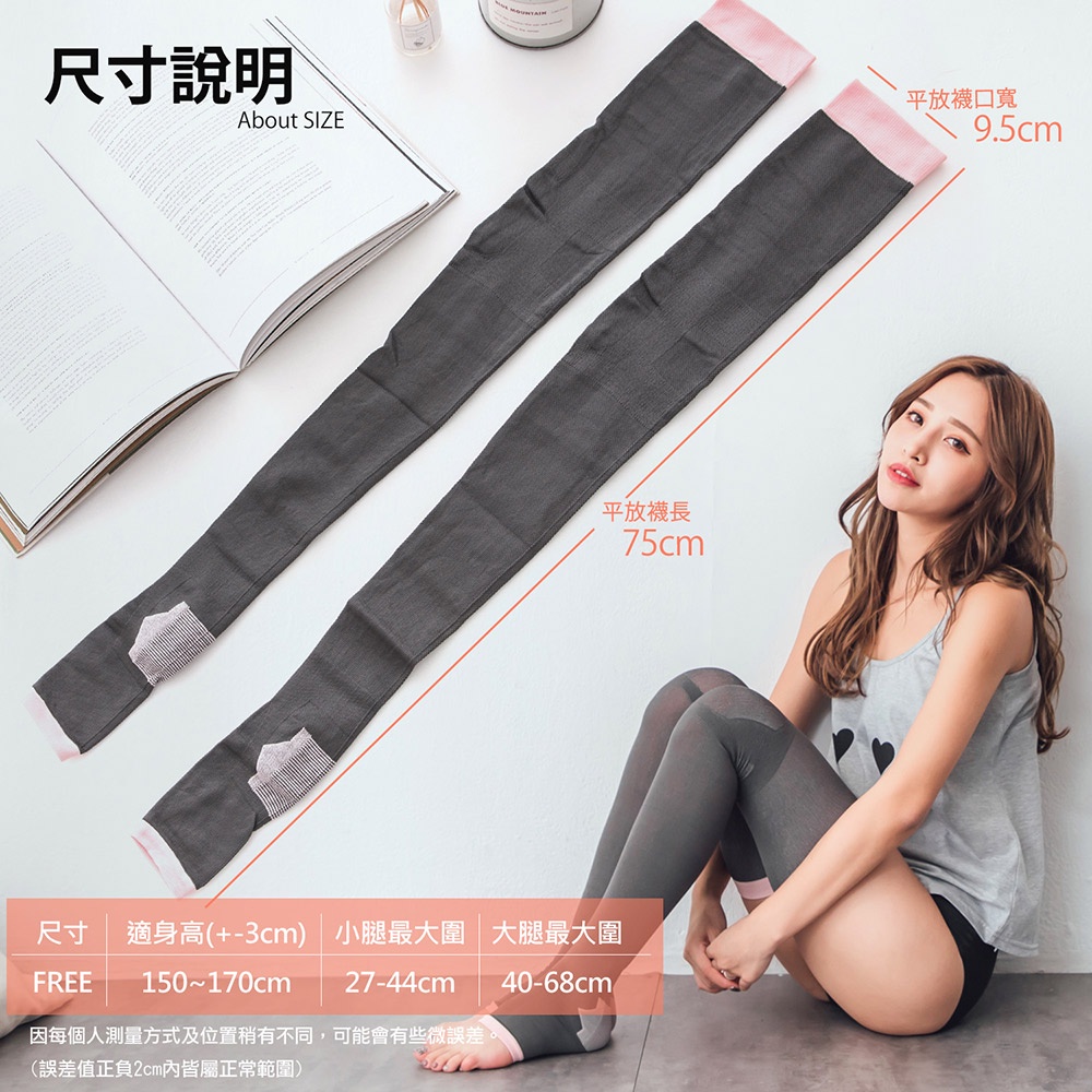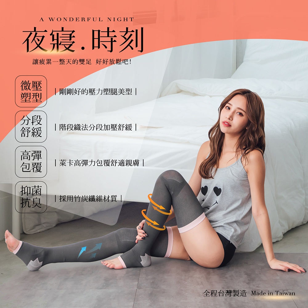 【GIAT】竹炭塑眠大腿襪 台灣製 睡眠襪 塑襪 美腿襪 女塑身竹炭灰1雙,FREE(單一尺寸)ShapewearGIAT吉亞特 官方旗艦店