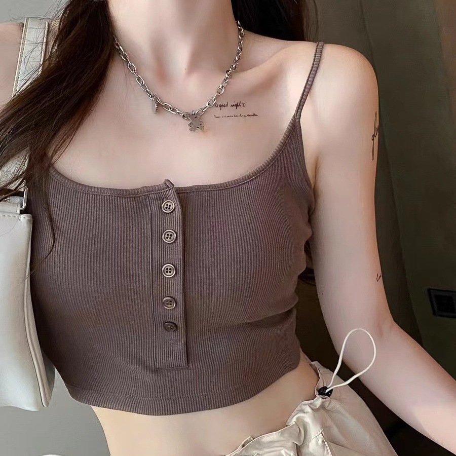 短款背心 短版上衣 附胸墊吊帶女內搭2024夏季外穿打底背心美背內衣胸罩020775黑|白|卡其|杏|紅|咖啡|深灰Tanks & CamisolesLeenaSui ~台灣賣家 隔日到貨
