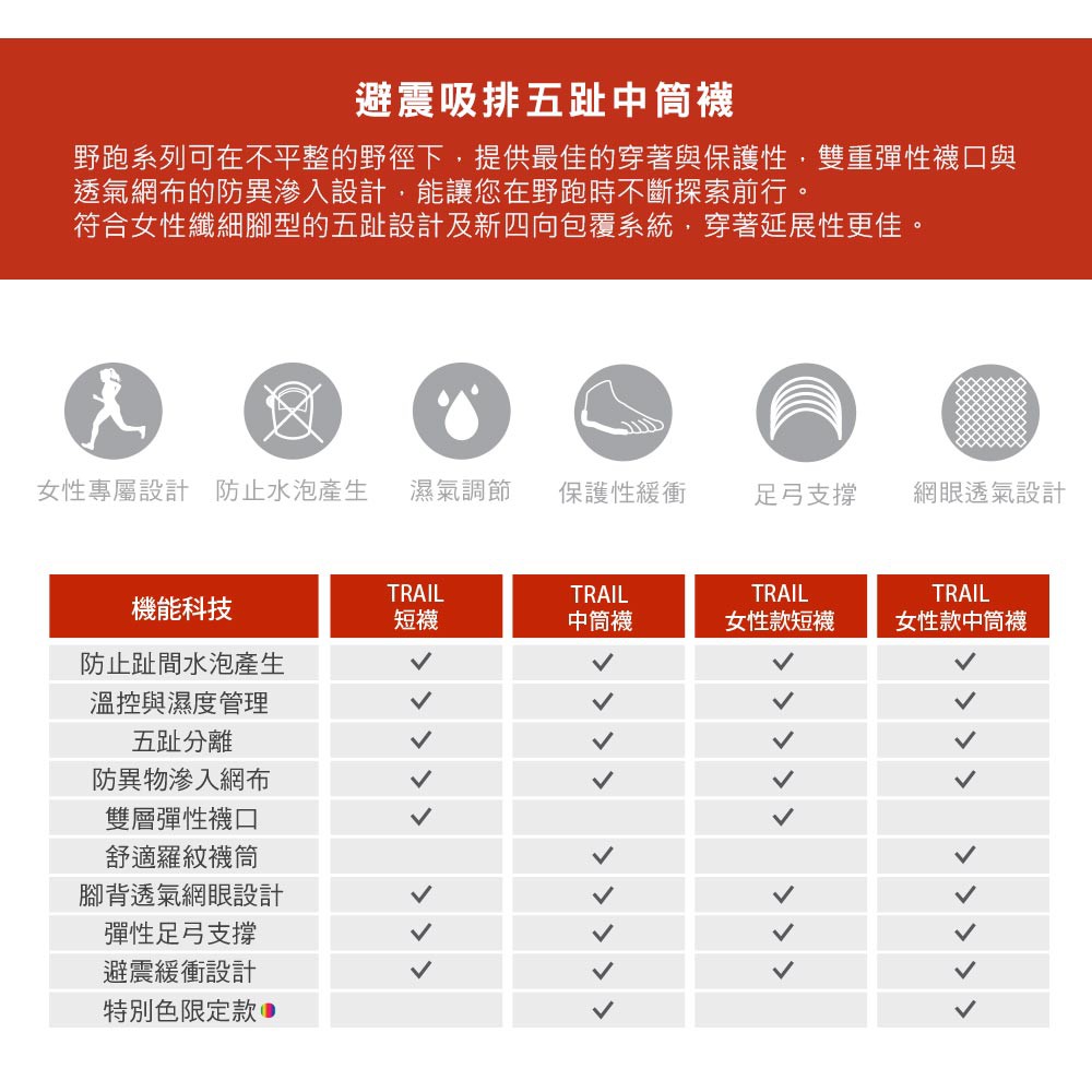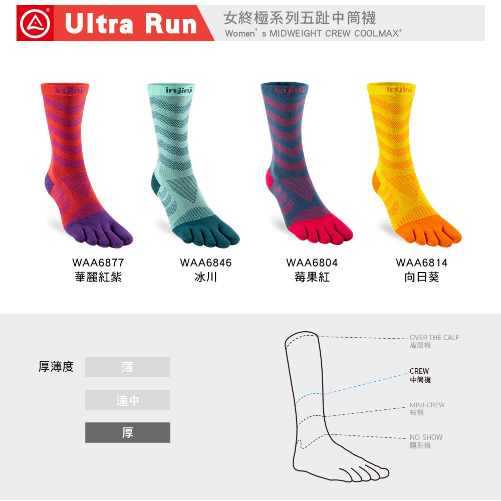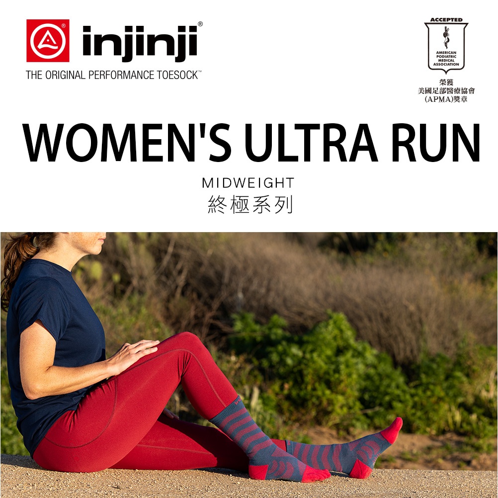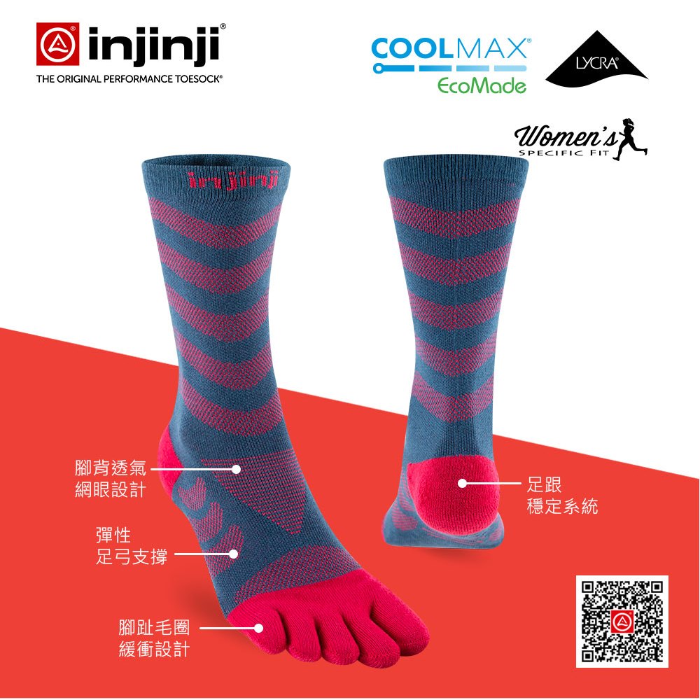 【injinji】女 Ultra Run終極系列五趾中筒襪(莓果紅)-WAA68|吸濕排汗 推薦女生 避震緩衝 馬拉松XSS|MLSocksGOHIKING戶外用品專賣店