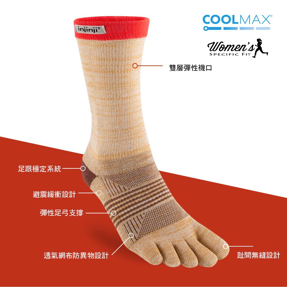 【INJINJI】TRAIL女性 野跑避震吸排五趾中筒襪 [褐色] 避震款 五趾襪 中筒襪 女襪| WAA39褐色,M/L|褐色,XS/SSocksGOHIKING戶外用品專賣店